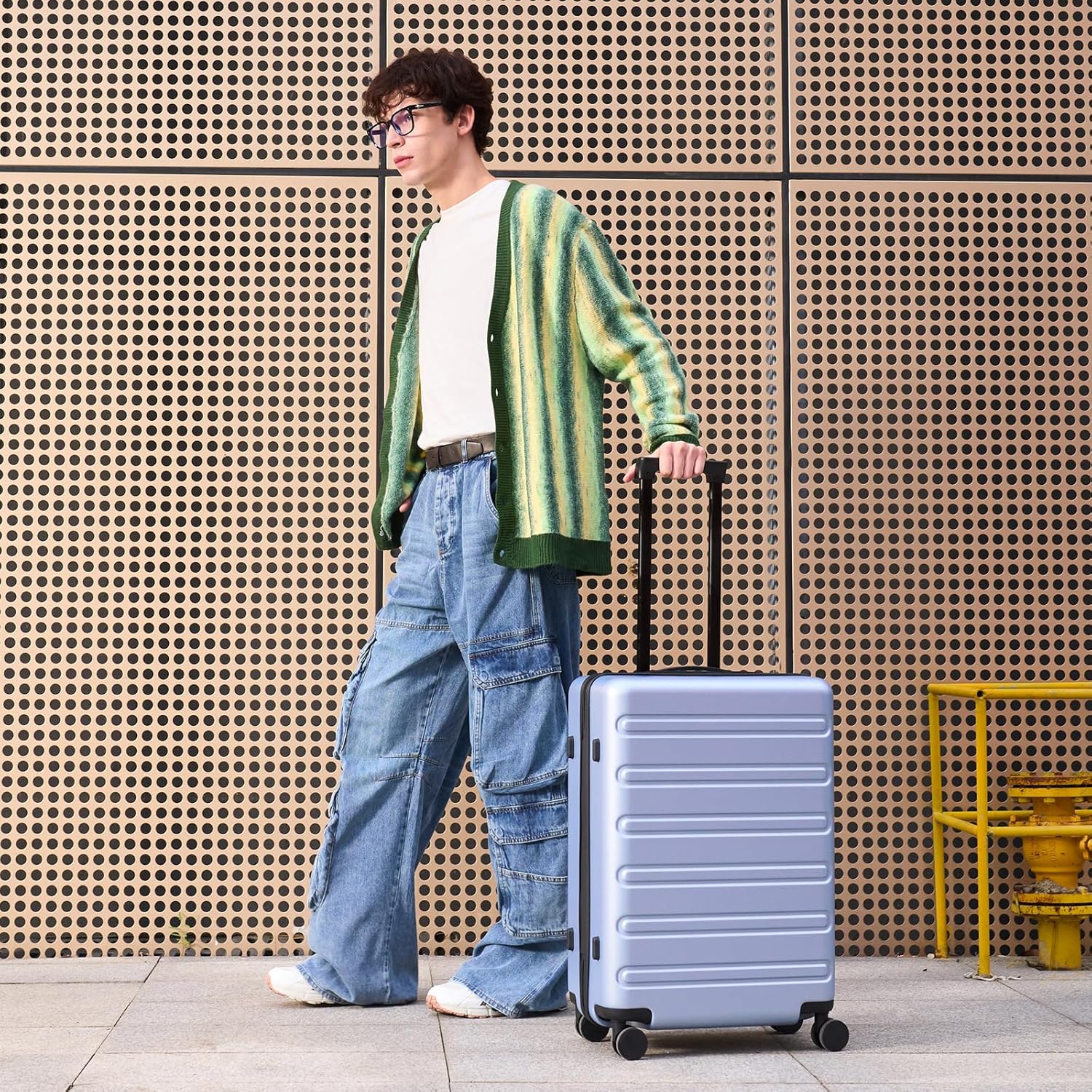 - 【Durable PC+ABS Hybrid Shell】Crafted with PC+ABS composite material, and features 7 pattern that enhances impact resistance and prevents scratch visibility, this suitcase withstands rough handling while maintaining a sleek appearance.