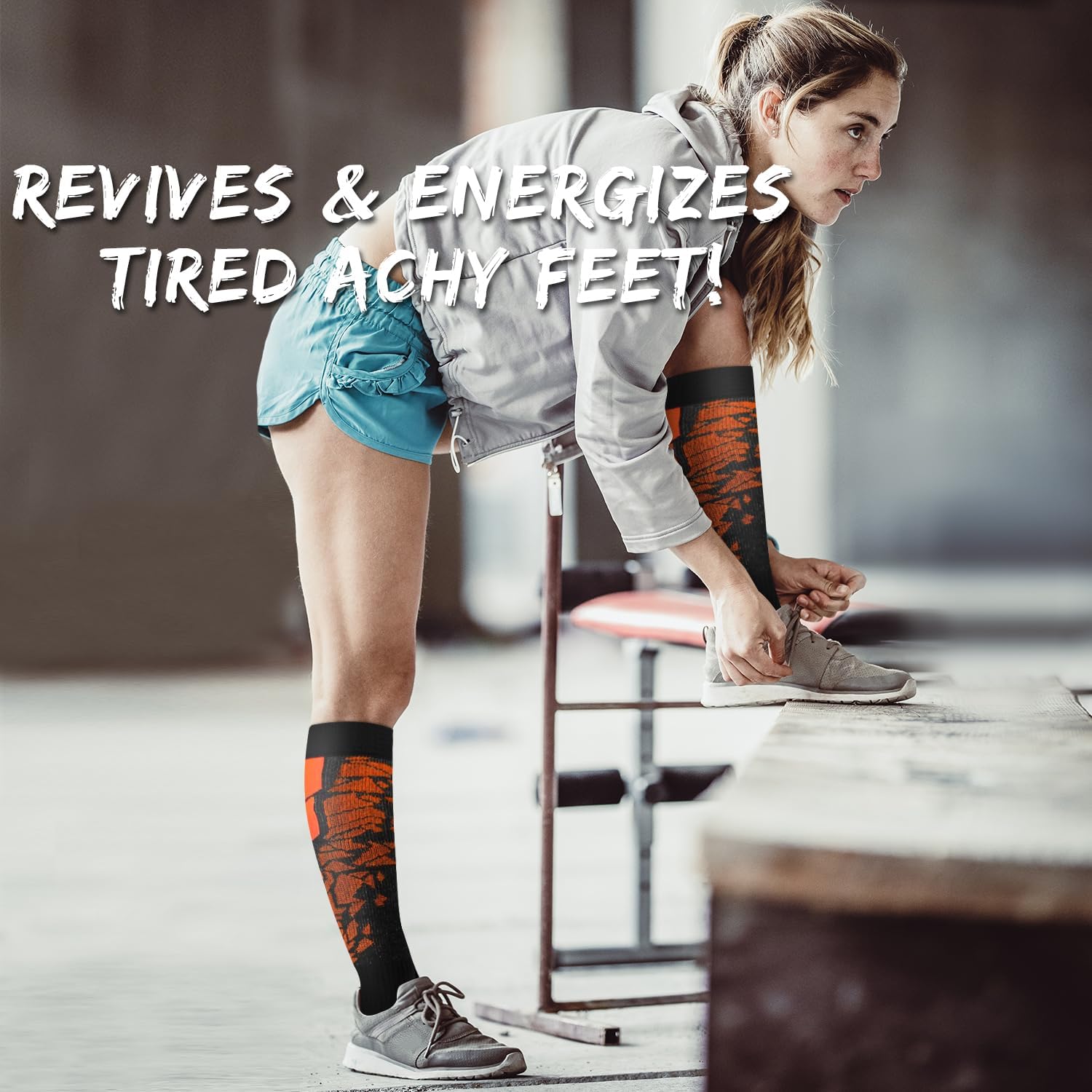 - Ture Graduated Compression-Graduated compression is the most effective form of compression, and works differently than regular compression socks. Work by creating a 'pressure gradient' which helps to push oxygen-poor blood out of the feet and legs, and back to the heart. This improves circulation, boost energy levels, and relieves symptoms such as aches and pains, throbbing, swelling, blood pooling, provides the renewable and sustained energy and allows you to heal in the legs and feet.