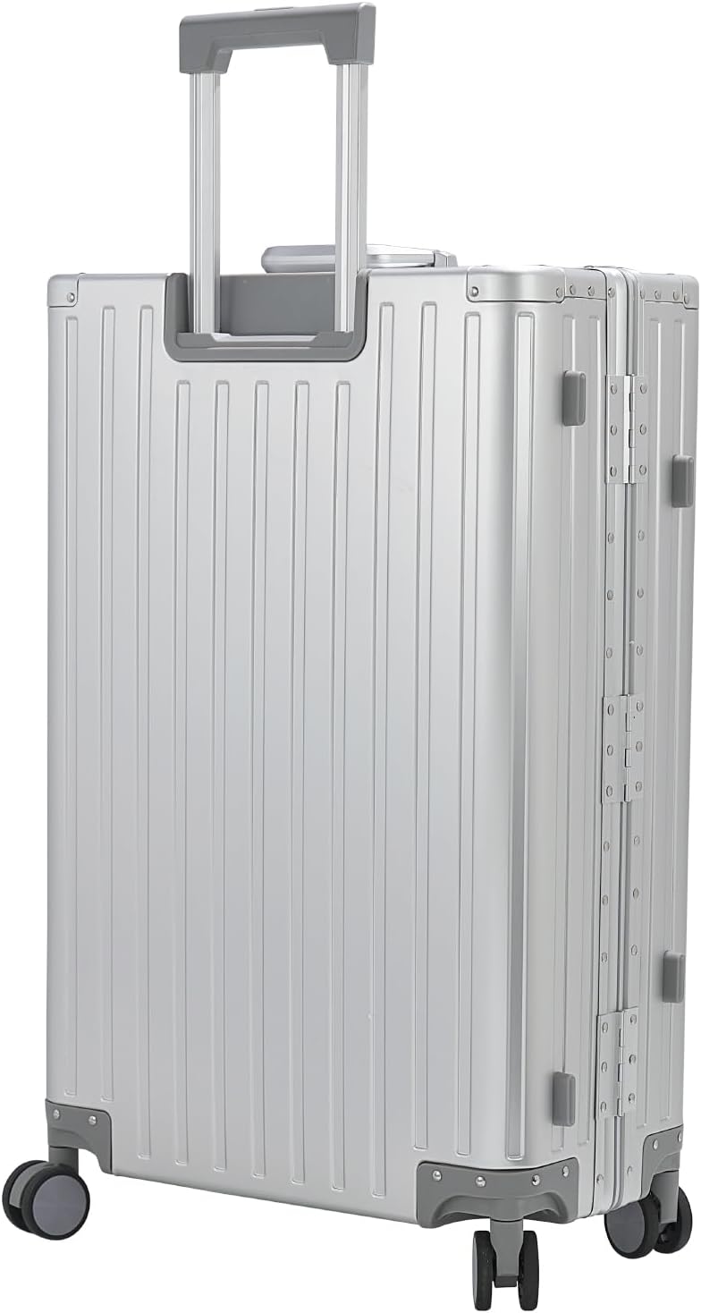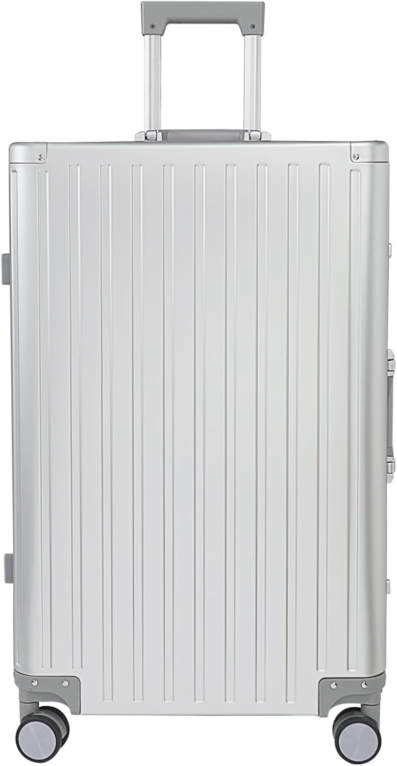 28-inch Aluminum Checked Suitcase: Silver - Full Metal Shell - Crush-Resistant & Burst-Proof, TSA Lock & Spinner Wheels for Business Travel - Men Women