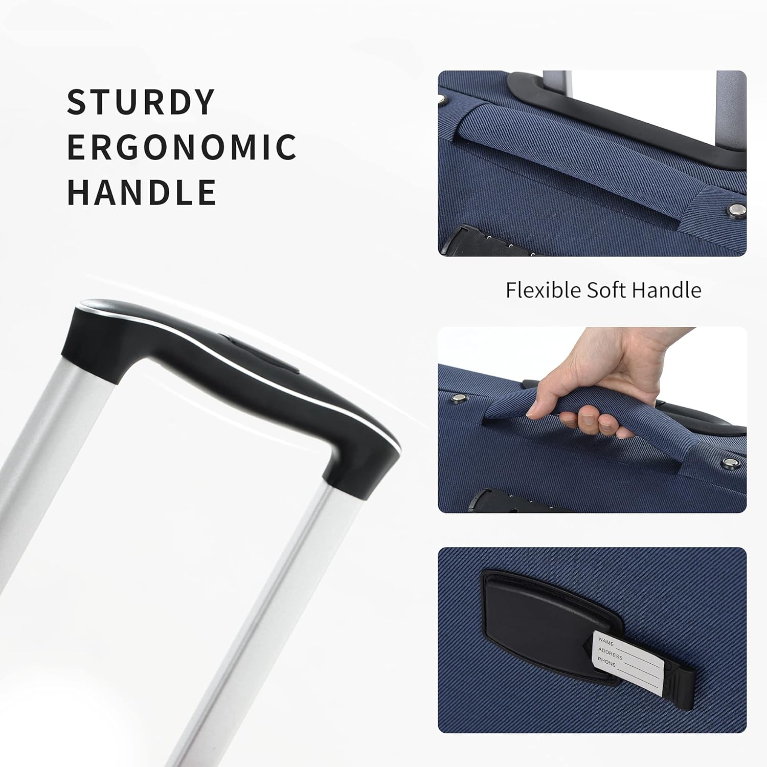 Merax Softside Luggage Set Softshell Lightweight 3 Piece Spinner Suitcase with Duffel Bag Expandable Upright Travel Luggage 22" 26" 30",Deep Blue