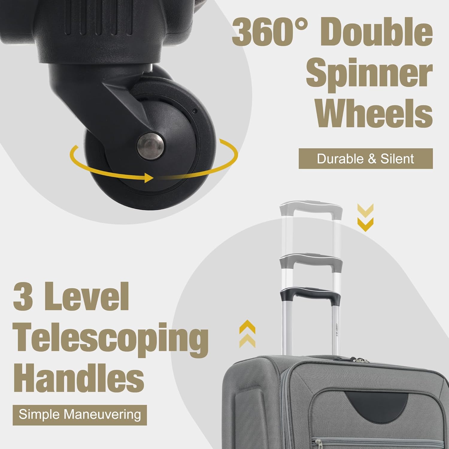 Merax Softside Luggage Set 3 Piece Suitcase with Duffel Bag Spinner Wheels Lightweight Expandable Travel Luggage 22" 26" 30",Grey