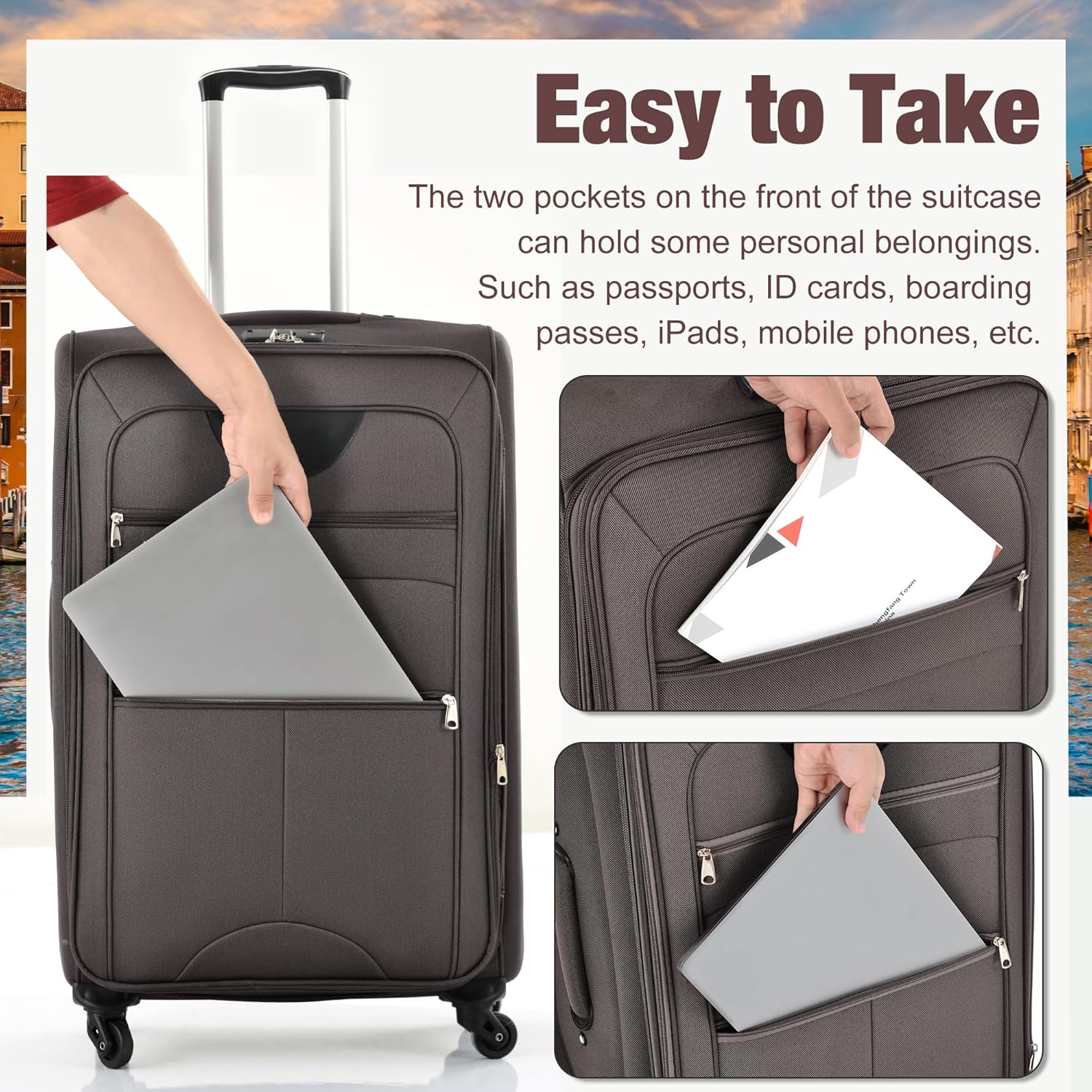 Merax Softside Luggage Set 3 Piece Suitcase with Duffel Bag Spinner Wheels Lightweight Expandable Travel Luggage 22" 26" 30",Brown