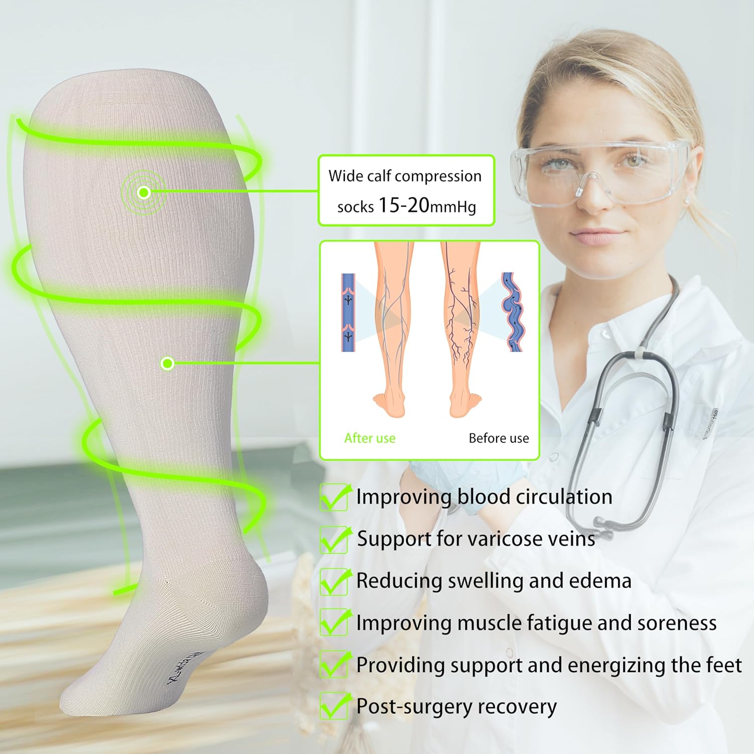 LEVSOX Wide Calf Compression Socks for Women&Men Plus Size 15-20mmHg Knee High Large Support Stockings for Circulation