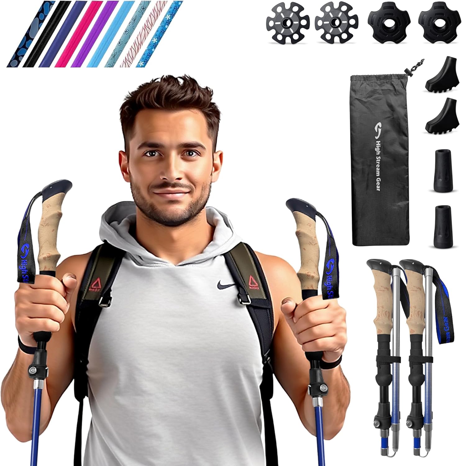 - KEEPS YOUR HANDS BLISTERS FREE - High Stream Gear’s Walking sticks for women and men are made with ergonomically designed handles that offer you a firm but comfortable grip. The handles will keep your hands dry.