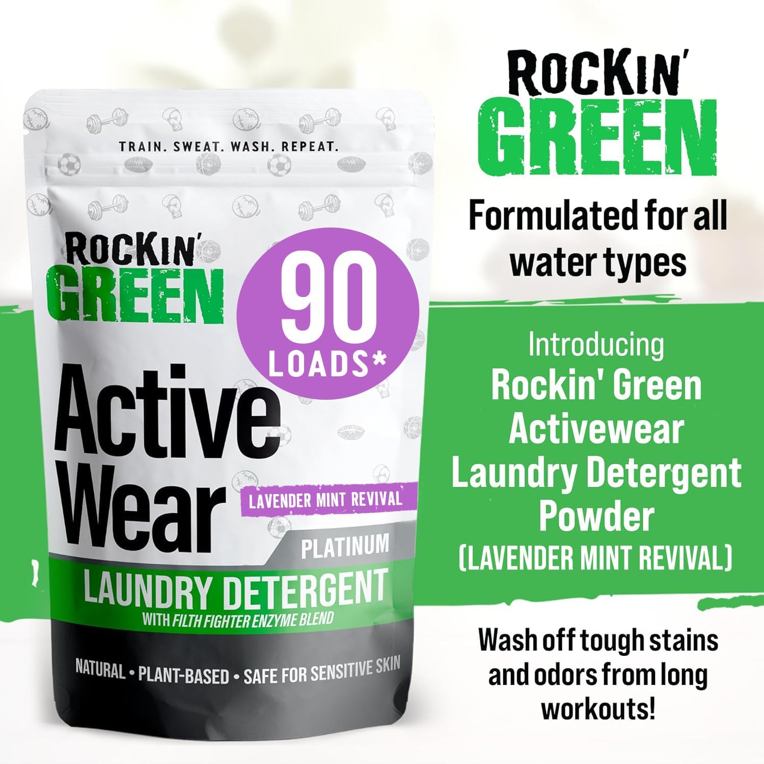 Rockin' Green Laundry Detergent, Plant based, All Natural Laundry Detergent Powder, Vegan and Biodegradable Odor Fighter, Safe for Sensitive Skin (Active Wear 90 Loads - Lavender Mint)