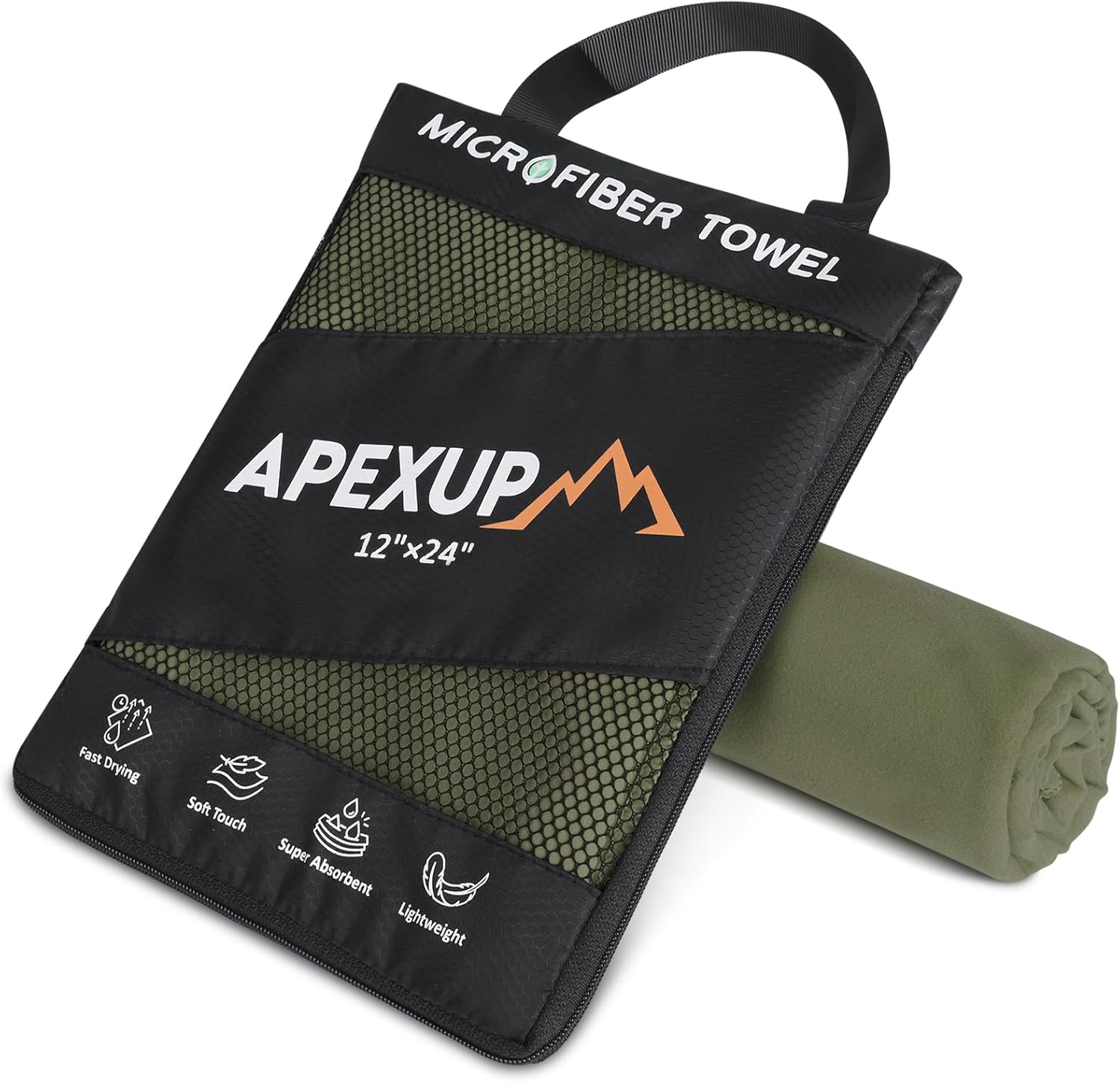 APEXUP Microfiber Travel Towel, Ultra Absorbent Quick Dry Towels, Lightweight Gym Sports Camping Towel for Workout, Yoga, Beach, Shower, Swimming (24"×12", Army Green)