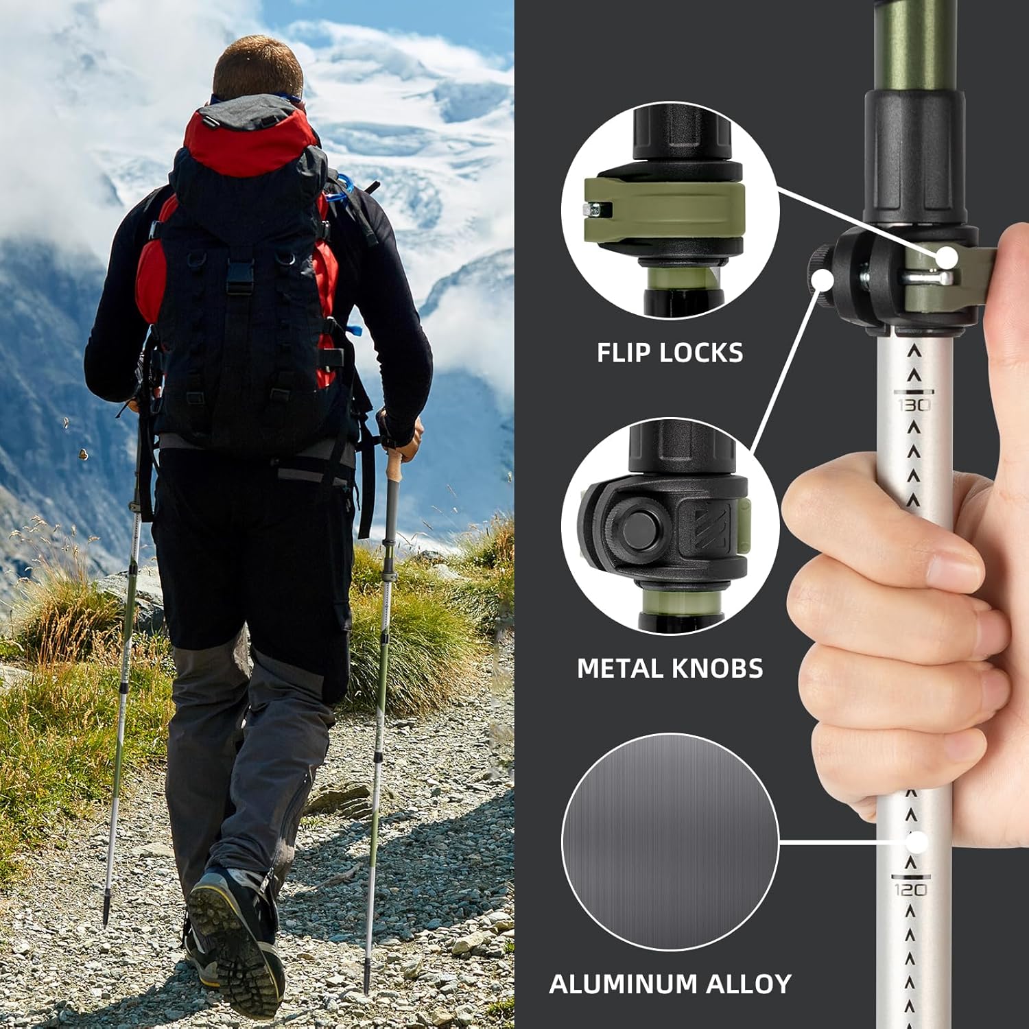 - Adjustable Length: With a telescoping design, Our collapsible hiking poles offer two adjustable sizes: 95cm to 115cm for those 5'8" and under, and 115cm to 135cm for those 5'9" and taller to ensure optimal comfort and support