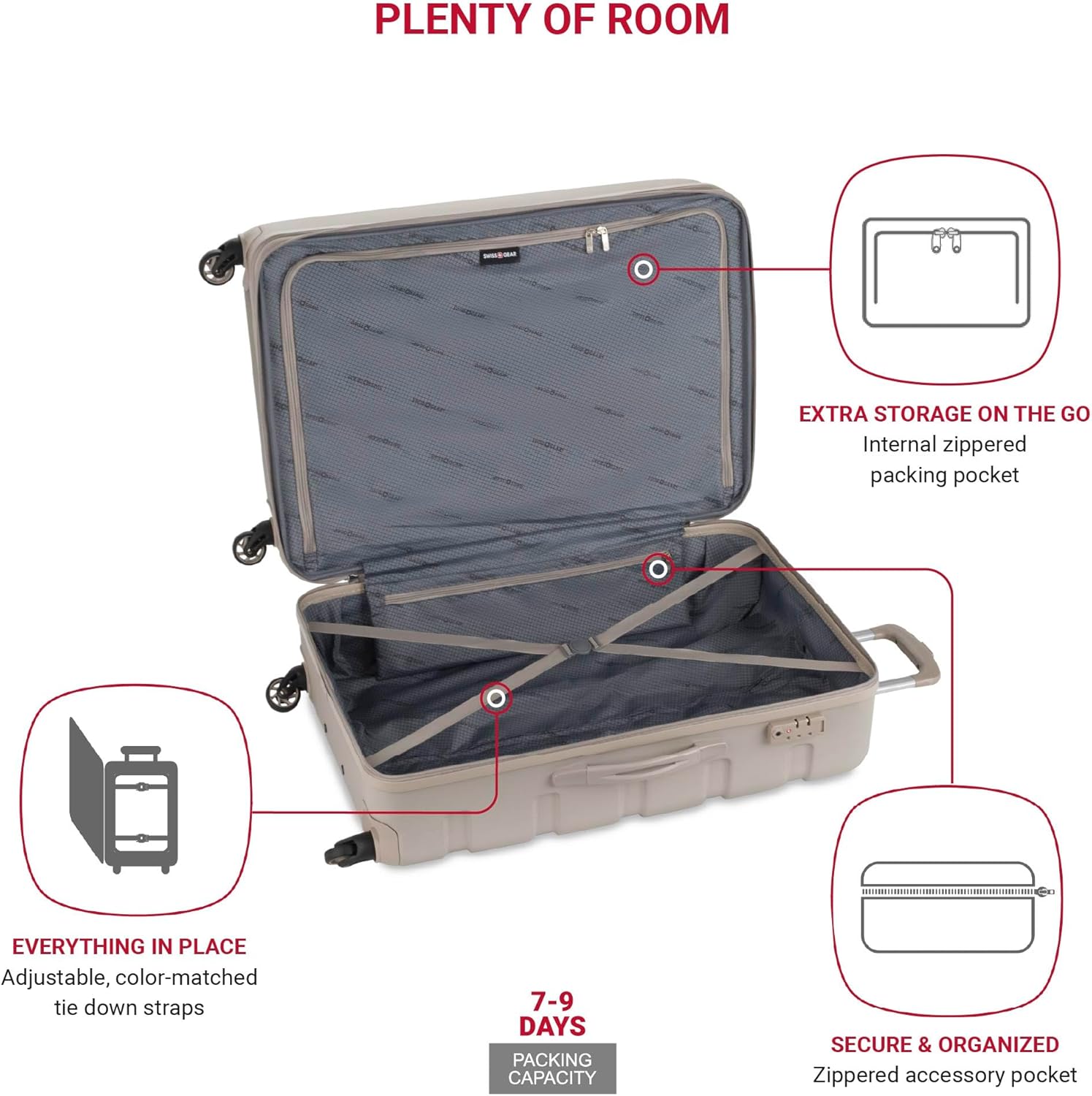 SwissGear 7366 Signature Hardside Expandable Luggage with Spinner Wheels, TSA Lock, Sand, Checked-Large 27-Inch