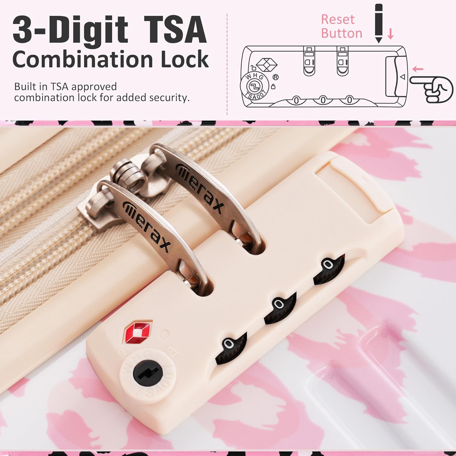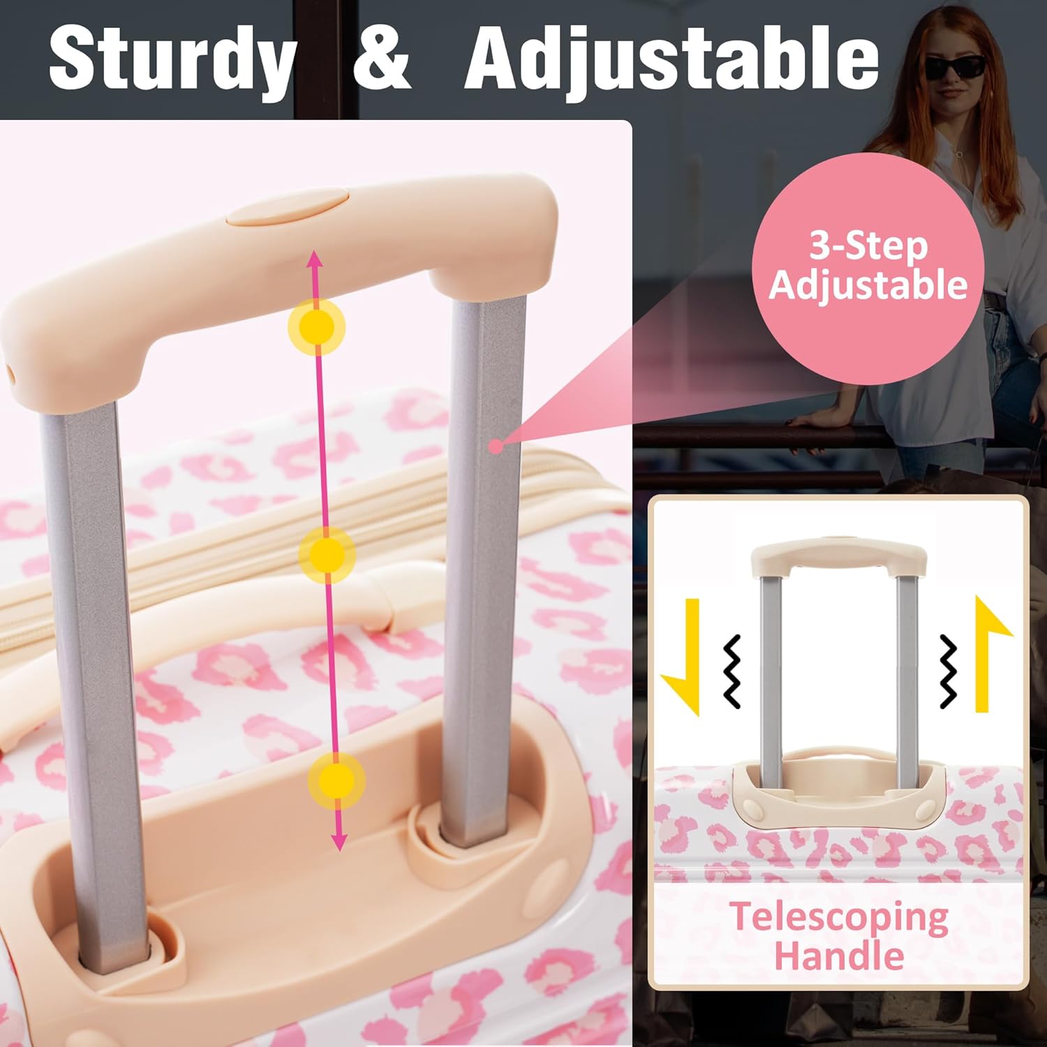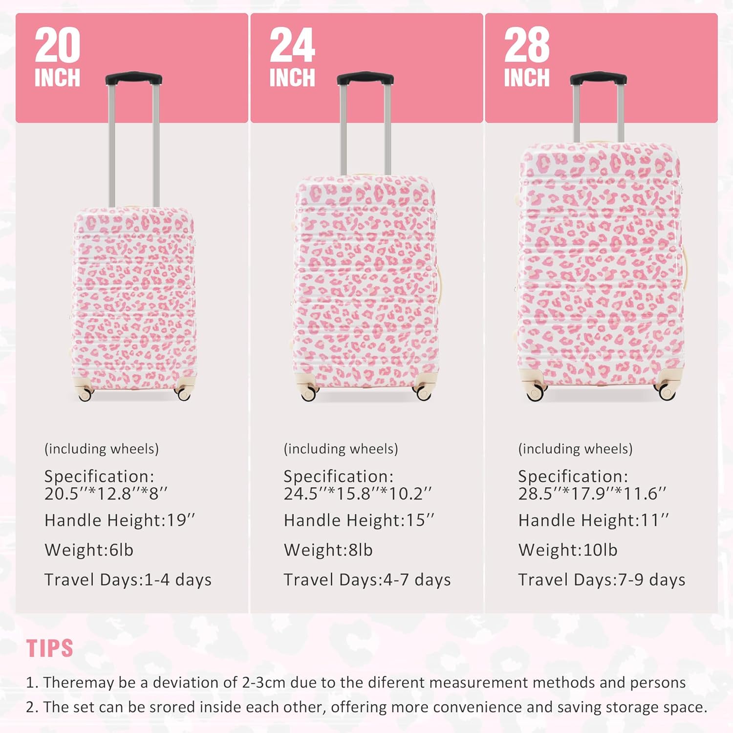 Merax Luggage Sets 3 Piece, Hardside Expandable Suitcase Set with Spinner Wheels, Lightweight Leopard Luggage 20+24+28 IN, Leopard Pink