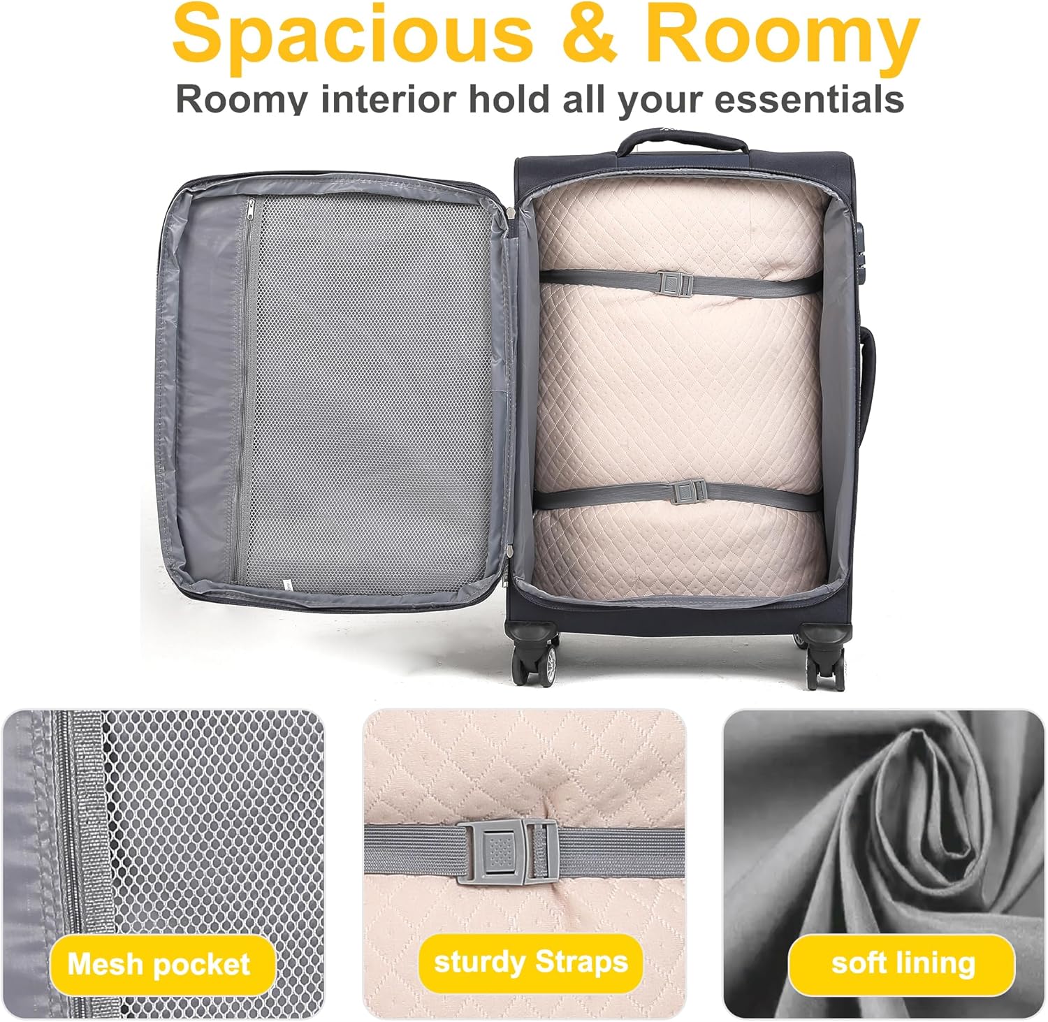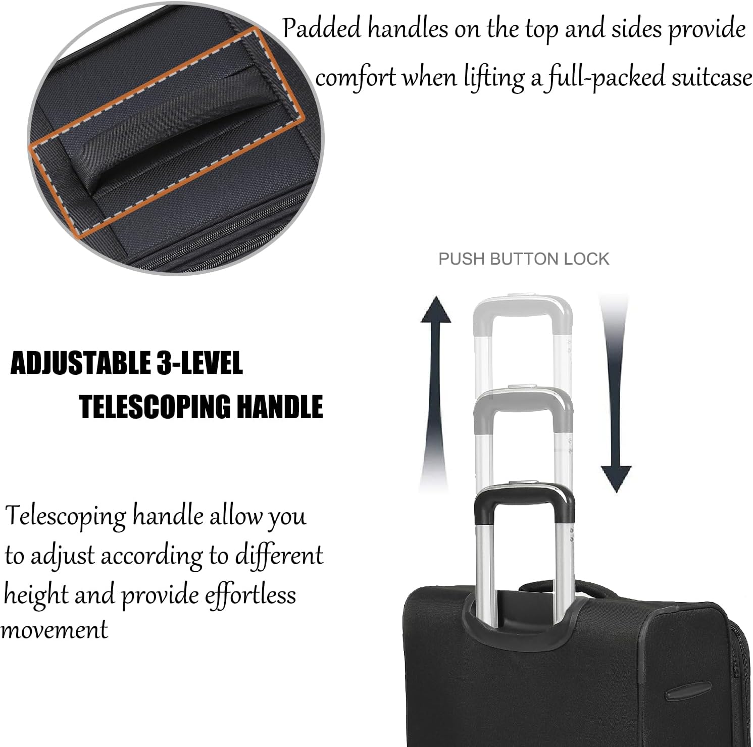 - 【360° Silent Double-Row Spinner Wheels】: With four 360-degree rotating wheels, the Softside Luggage Sets can rotate silently and smoothly, making it easy to move. All parts roll upright, so there is no weight on the arms and travel is easy.