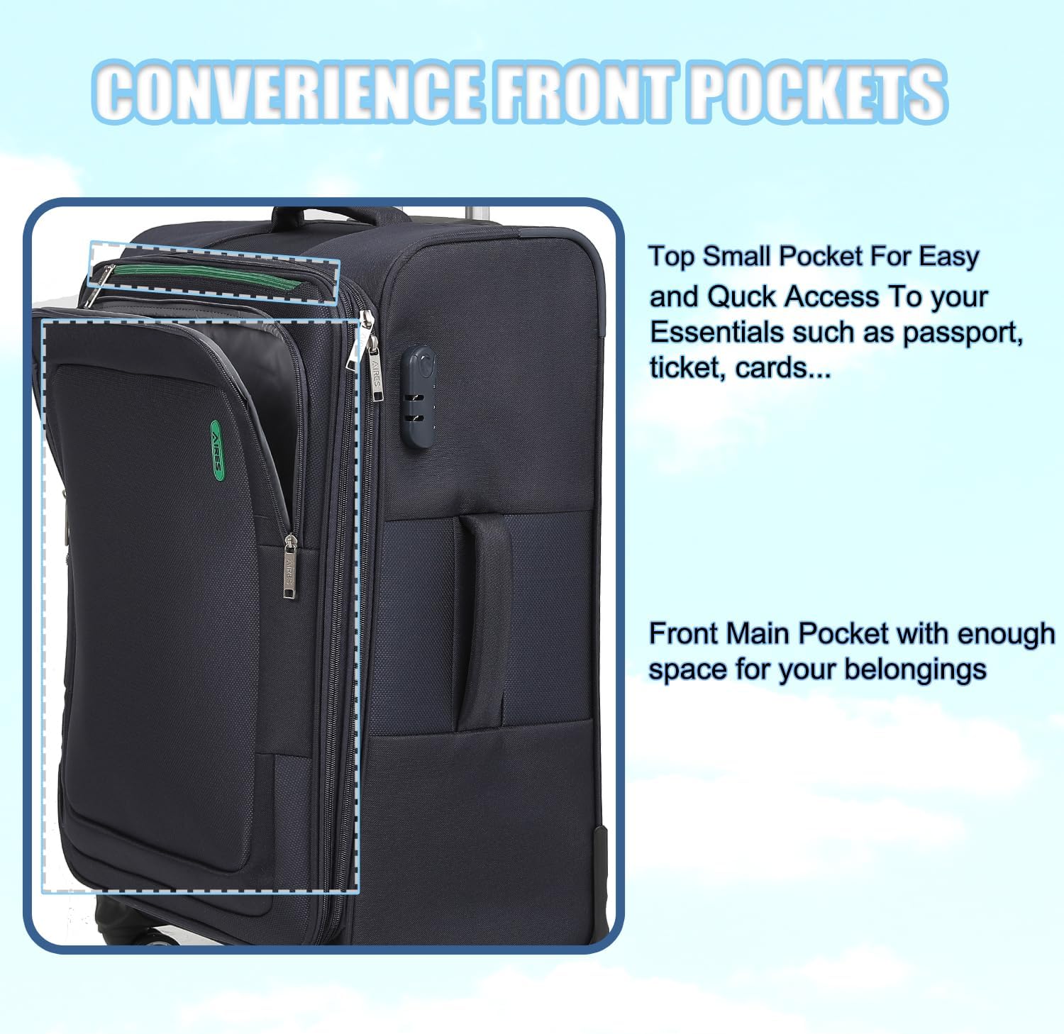 - 【360° Silent Double-Row Spinner Wheels】: With four 360-degree rotating wheels, the Softside Luggage Sets can rotate silently and smoothly, making it easy to move. All parts roll upright, so there is no weight on the arms and travel is easy.