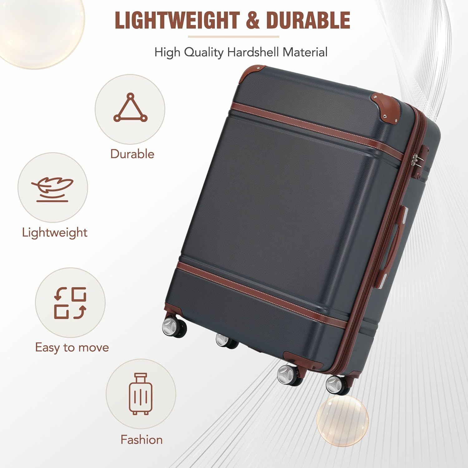 Merax Luggage Set 3 Piece Suitcase Set with 1 Cosmetic Case Expandable Spinner Wheels Vintage Luggage Sets(Black,20"+24"+28")