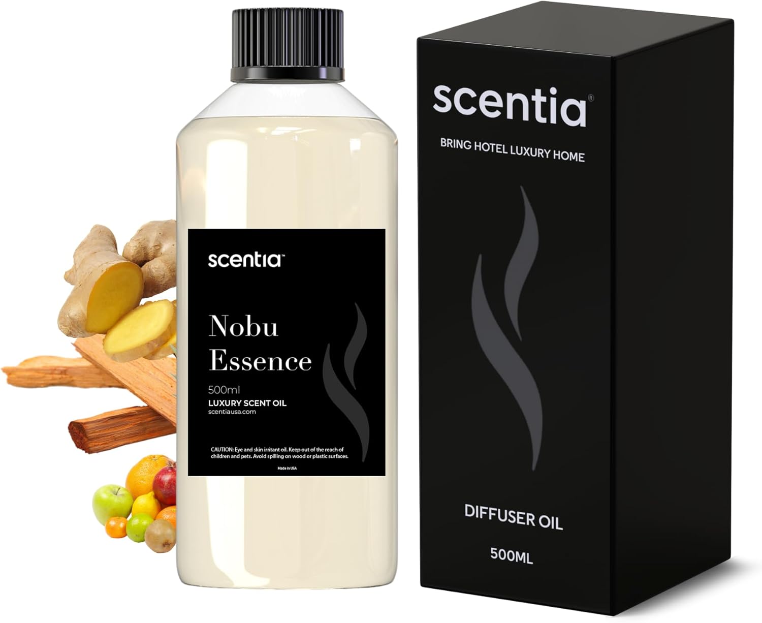 Scentia Hotel Diffuser Oil Inspired by The Nobu Hotel Scent - 500 mL 16.9 fl oz - Essential Oil Blend Jasmine, Lilly, Sandalwood & Fresh Citrus for HVAC Ultrasonic Diffusers - Nobu Essence
