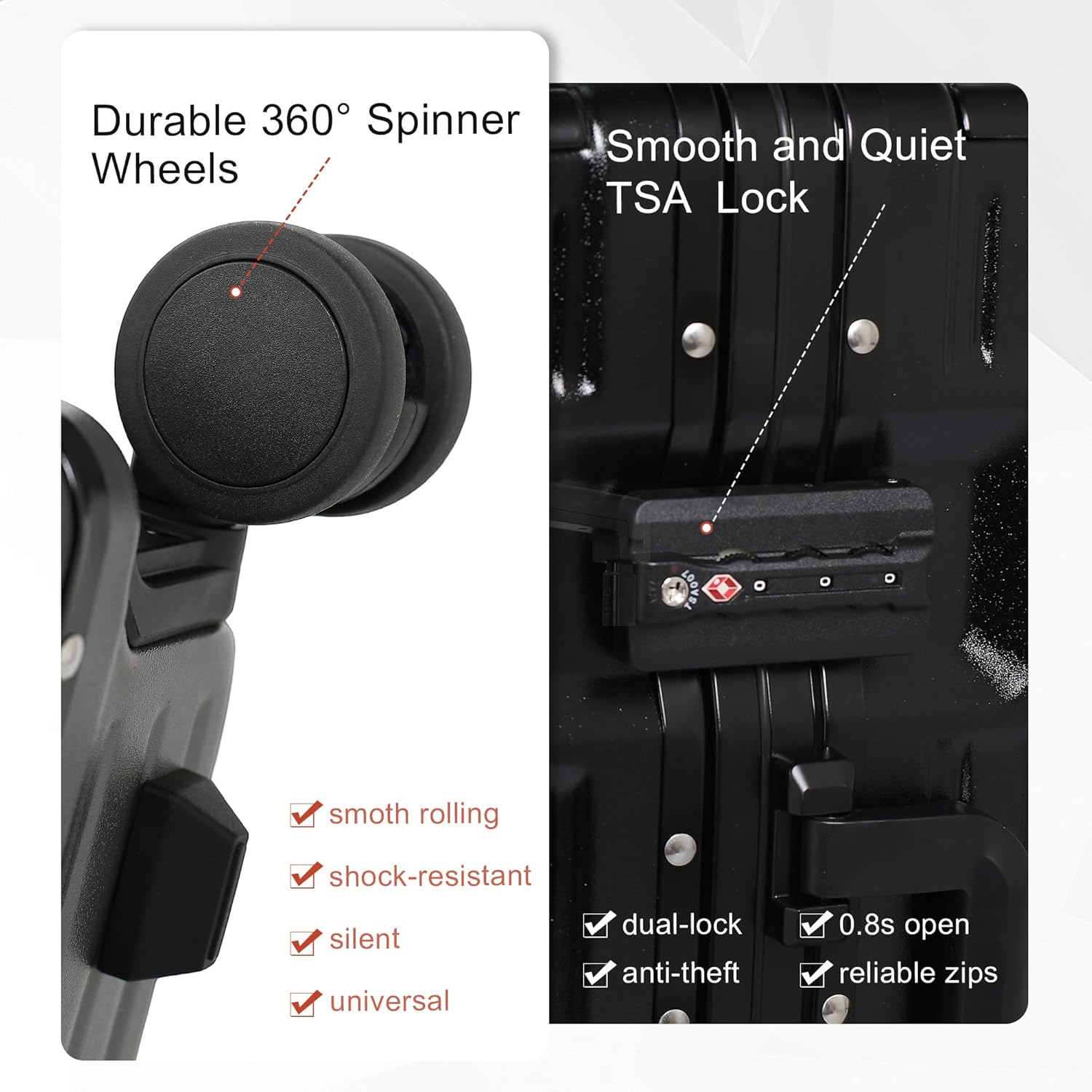 - SECURITY AND EFFORTLESS MOBILITY: VentureVault TSA approved carry on luggage features the TSA dual-lock system to keep your belongings safe on trips; 360° dual spinner wheels for silent and smooth rolling