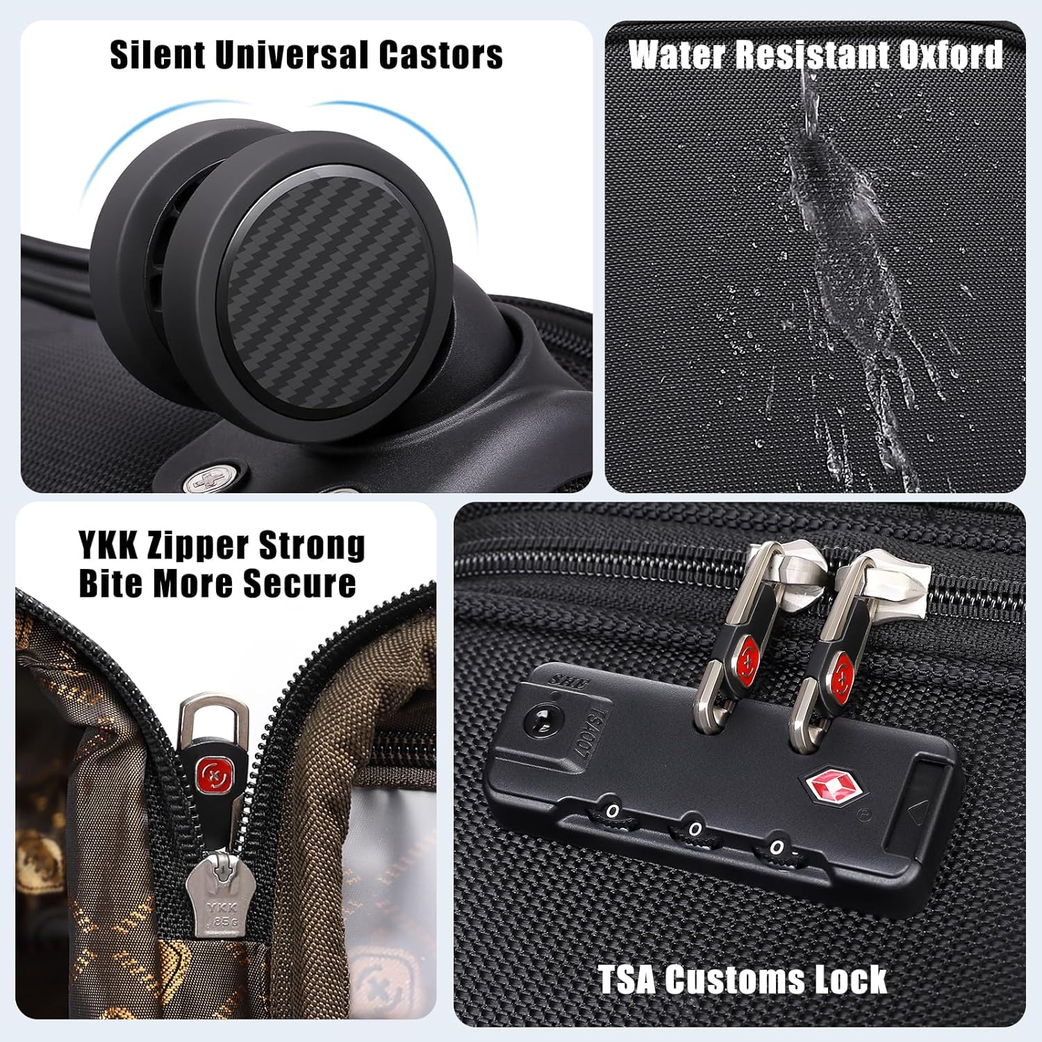 - SECURE AND DURABLE: Expandable travel case provides ample parking space and is made of durable, abrasion-resistant oxford fabric that is fully lined; Equipped with metal cylinder TSA lock, this travel gives you peace of mind when checking in or out