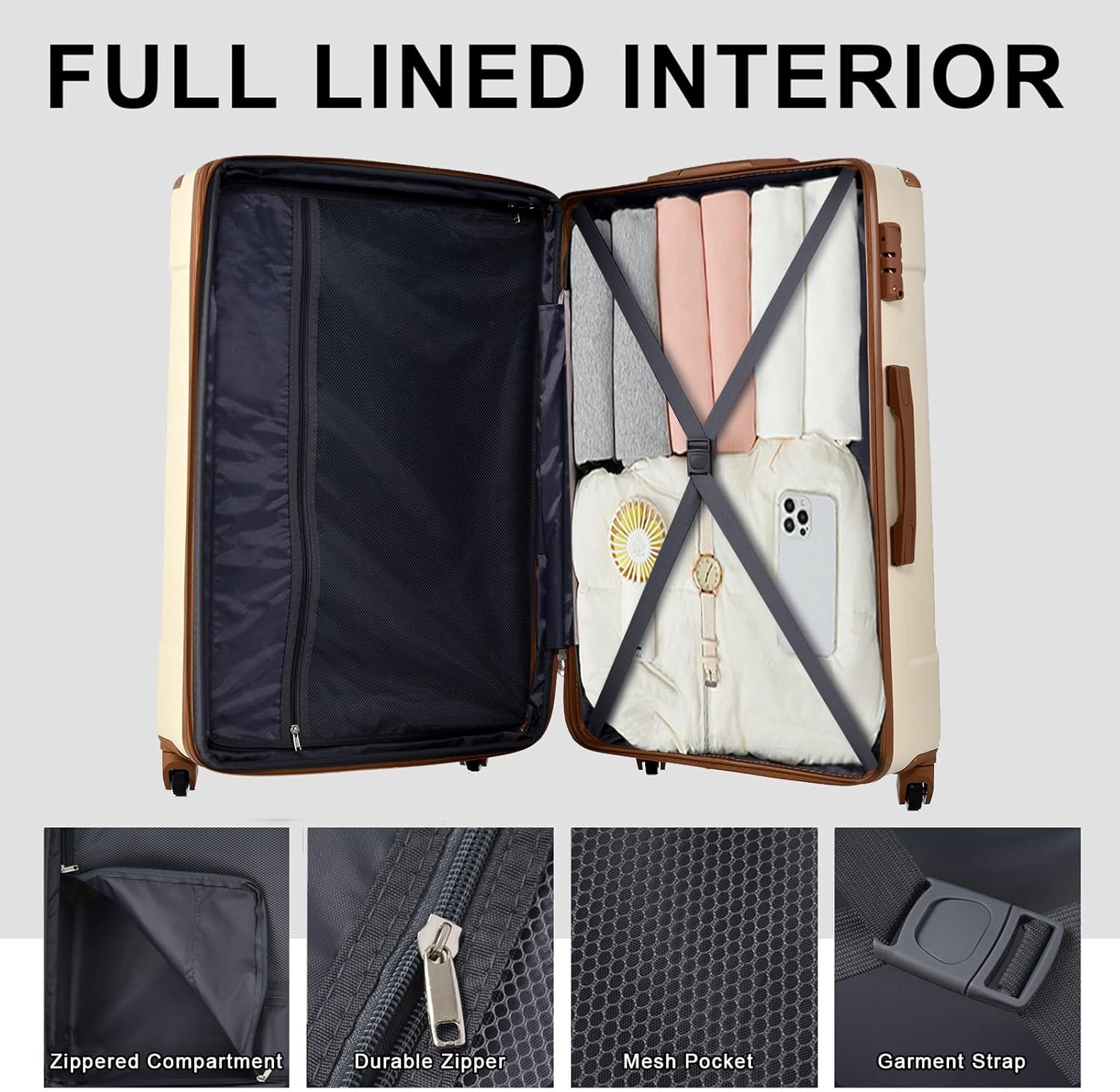 Merax Luggage Sets 2 Piece Suitcases with Wheels, Hardshell ABS Expandable and Lightweight, TSA Lock, Spinner Wheels, Carry On Luggage with Corner Guards (20 28 inch White Brown)