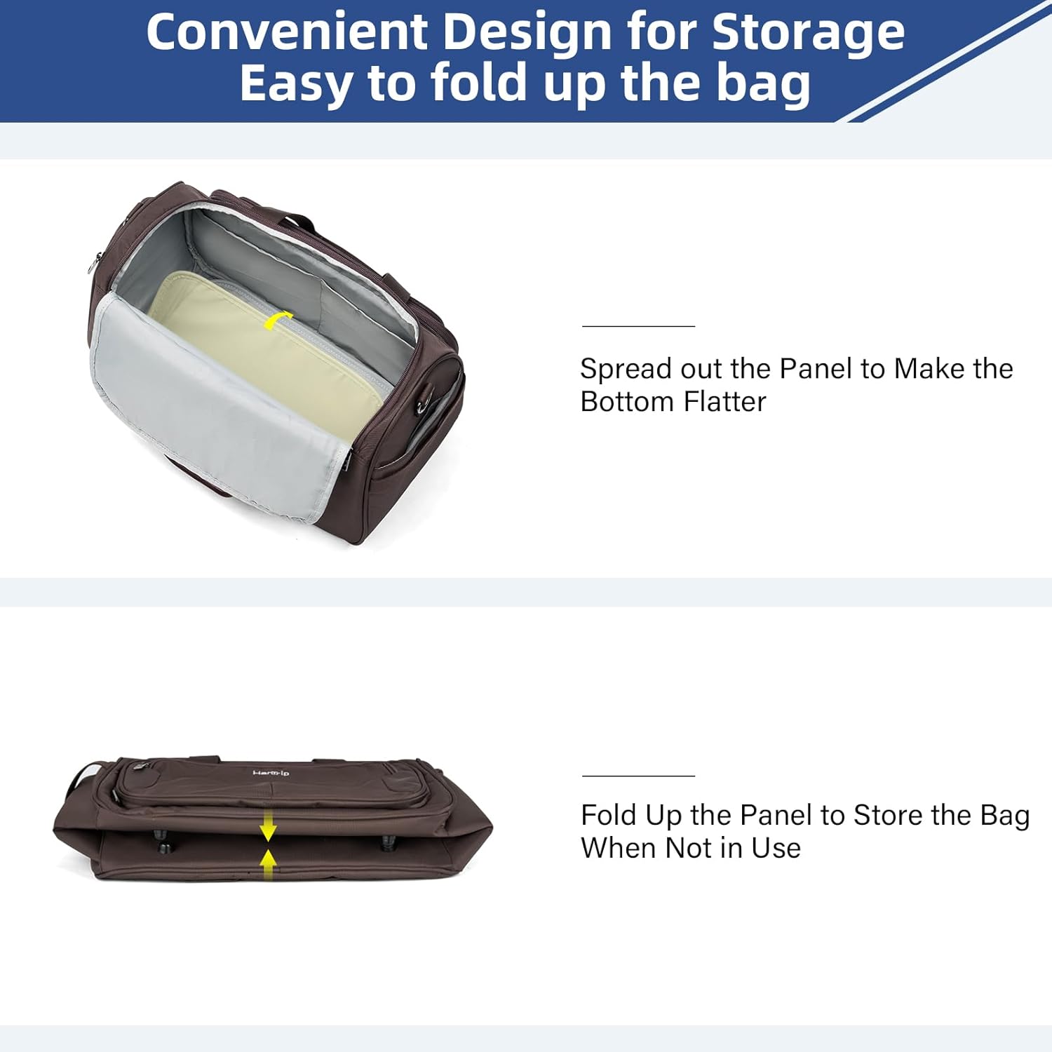 Carry on Duffel Bag Foldable Duffle Bags for Travel, Under Seat Personal Item Bags for Airplanes, Weekender Overnight Mens Travel Tote Bag for Women Small Softside Carry on Luggage (Coffee)
