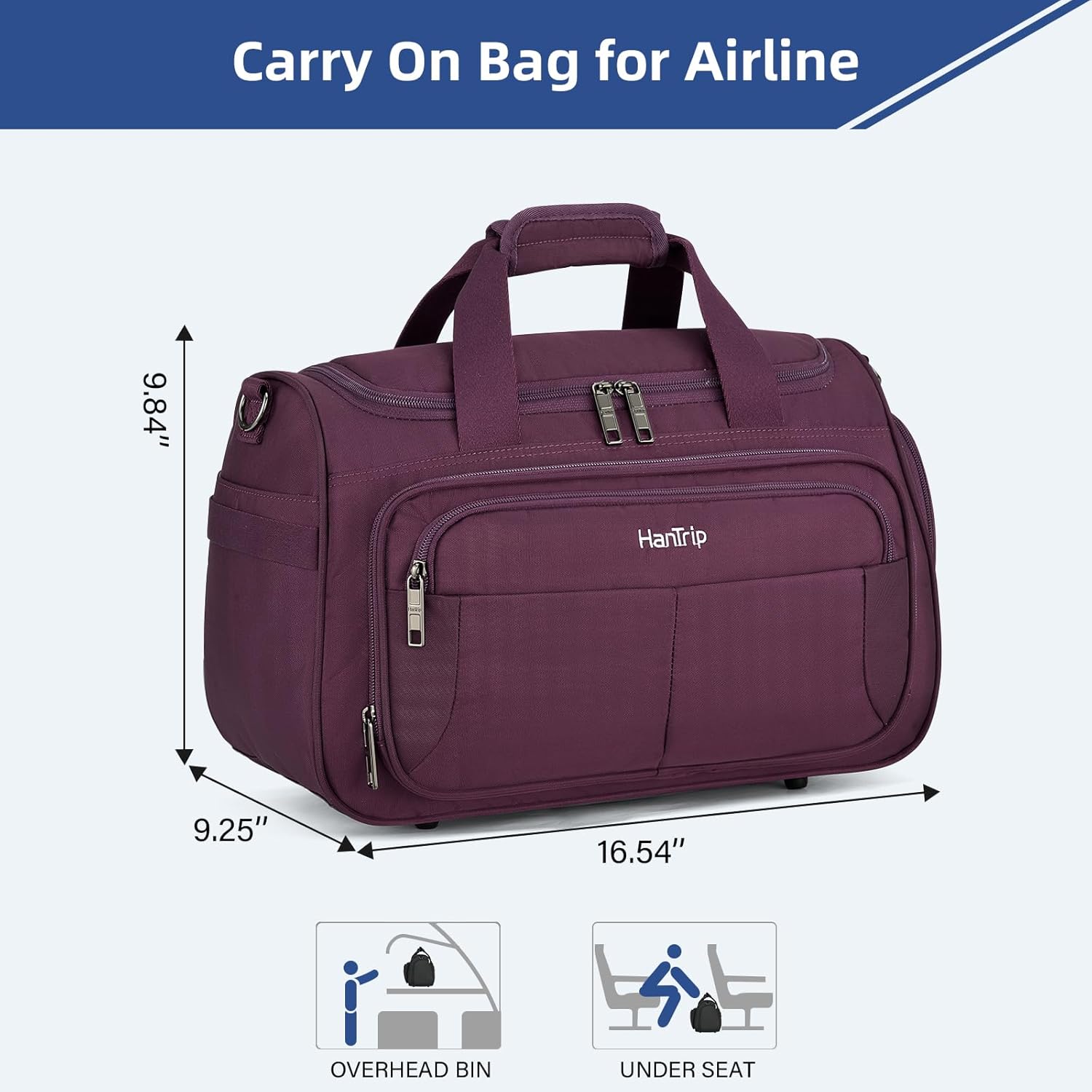 - 【Under Seat Carry on Bags for Airplanes】Measuring 16.5×9.3×9.8 inch (42×23.5×25CM) and weighing just 2.6 pounds, this lightweight personal item travel bag fits seamlessly under seats on all major airlines, including Spirit Airlines and Frontier Airlines (18x14x8 inches equivalent). Its compact yet spacious build ensures hassle-free storage in overhead compartments or beneath aircraft seats, eliminating gate-check fees and delays.
