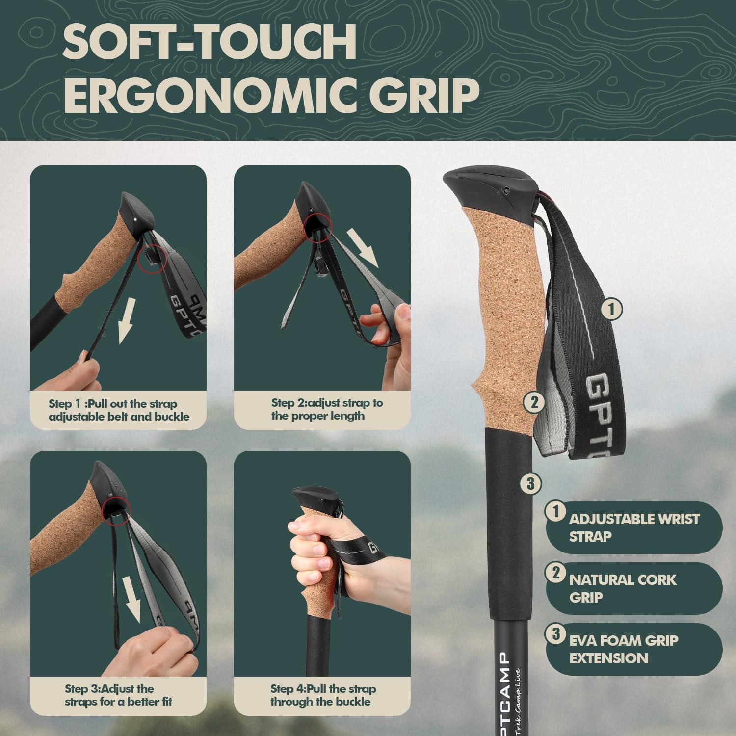 - 【Dependable Trekking Poles by GPTCAMP】:GPTCAMP prioritizes customer trust and satisfaction. Rest assured that our trekking poles are backed by a 1-year manufacturer's to ensure superior quality. Trust in GPTCAMP for reliable hiking gear you can depend on.