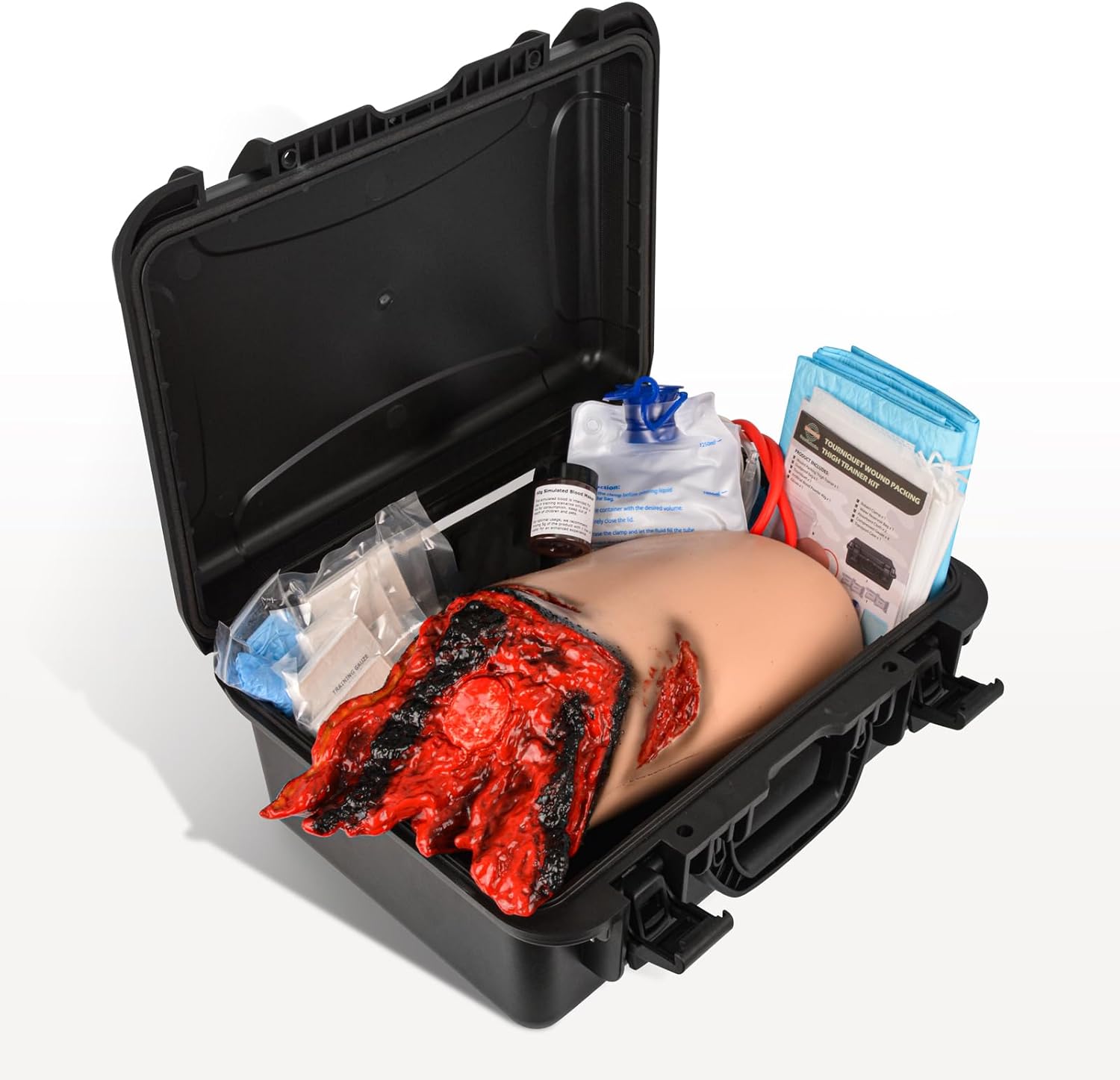 - Bleeding Functionality: The Bleeding Trauma Modules includes embedded tubing, a water reservoir bag, and blood simulants to provide realistic bleeding effects. This setup helps trainees effectively practice casualty management in various bleeding scenarios. The tourniquet shown in the video and picture is for demonstration purposes only. It is not included with the product and is not for sale.