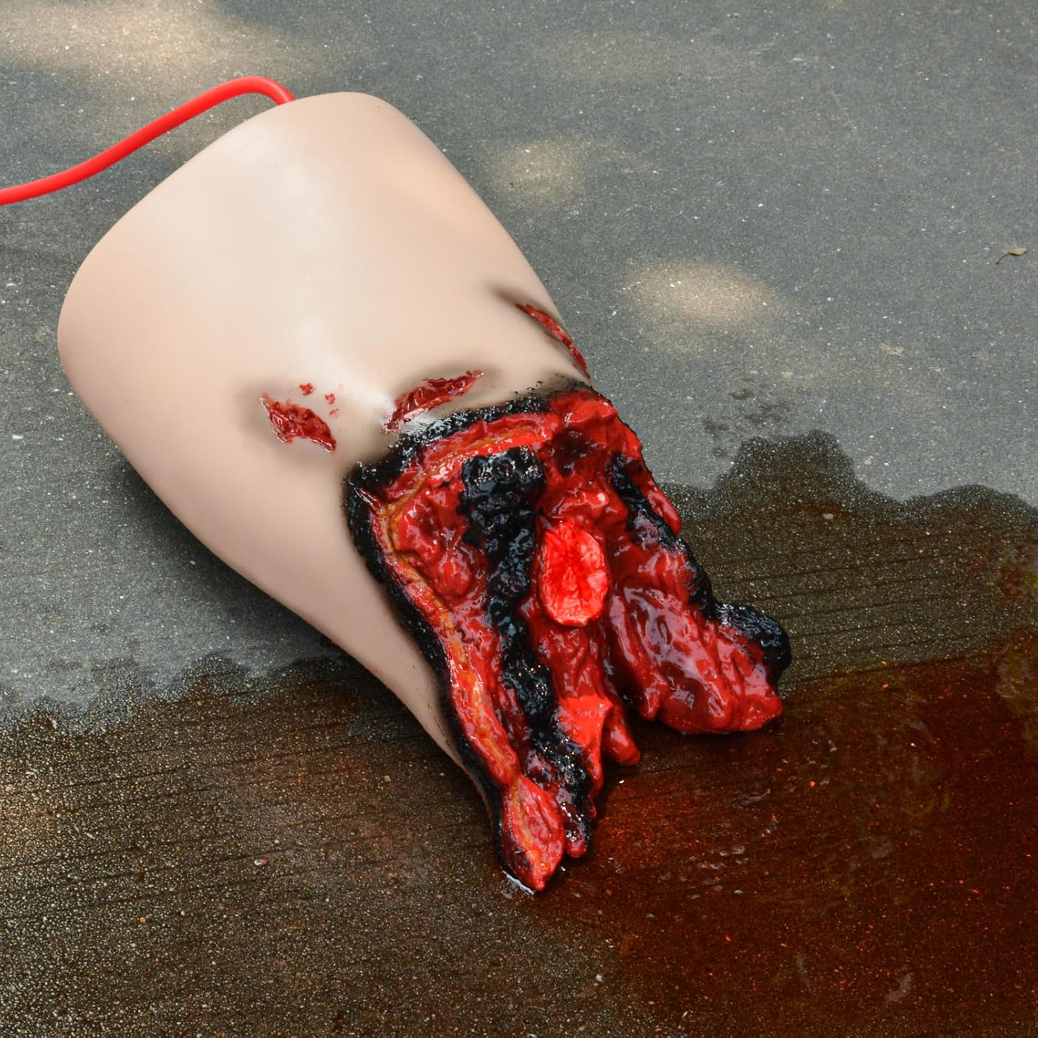 - Highly Realistic Simulation: Our thigh amputation hemorrhage control model replicates a robust adult male thigh with a blast injury, featuring red paint to simulate blood and blackened edges to represent burn effects, offering an authentic visual and tactile training experience.