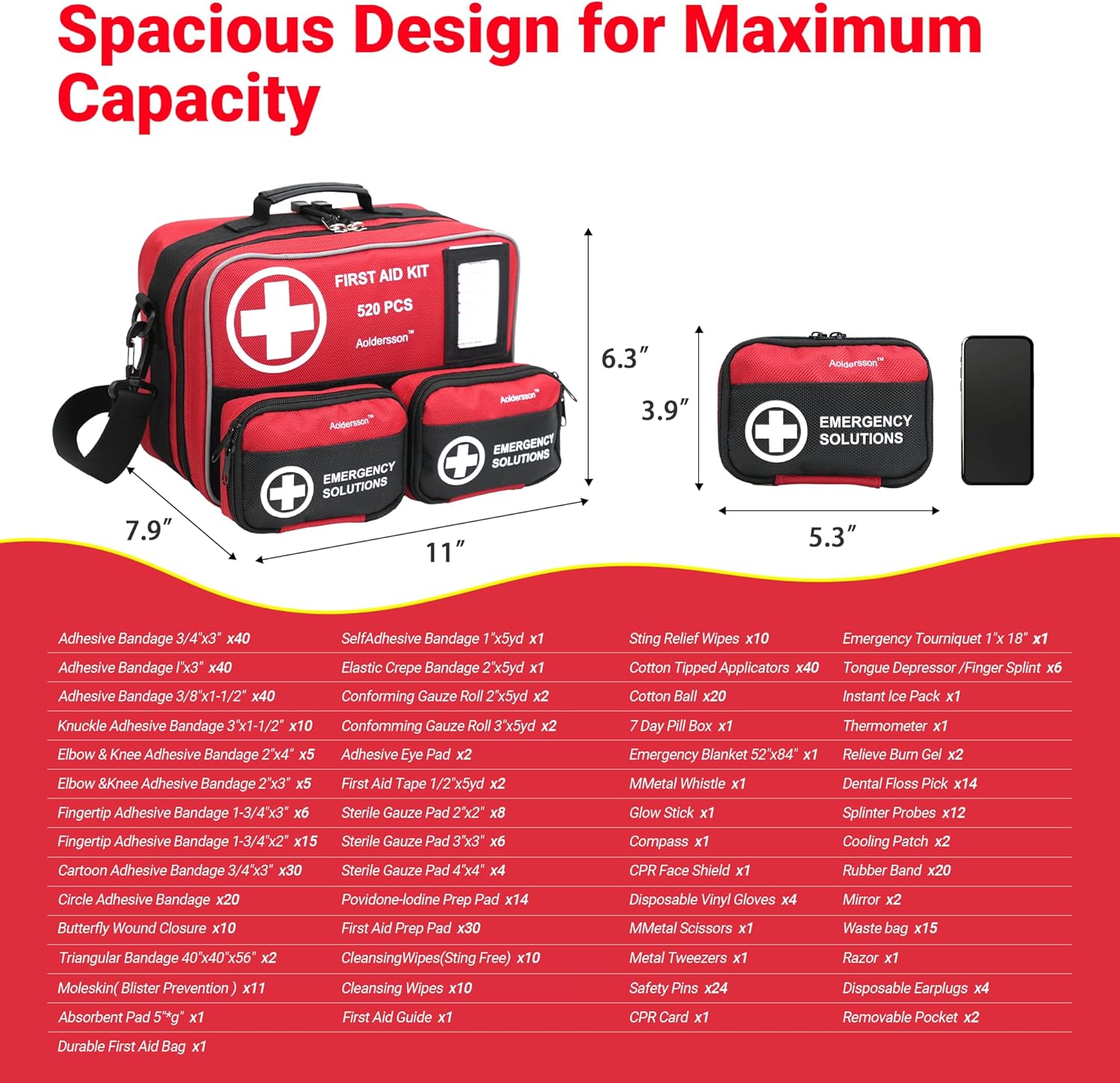 520 Piece Large First Aid Kit – Emergency Survival Kit for Car, Home, Camping, and Travel – Compact Medical Kit for Roadside Emergencies, Outdoor Adventures, and Everyday Safety