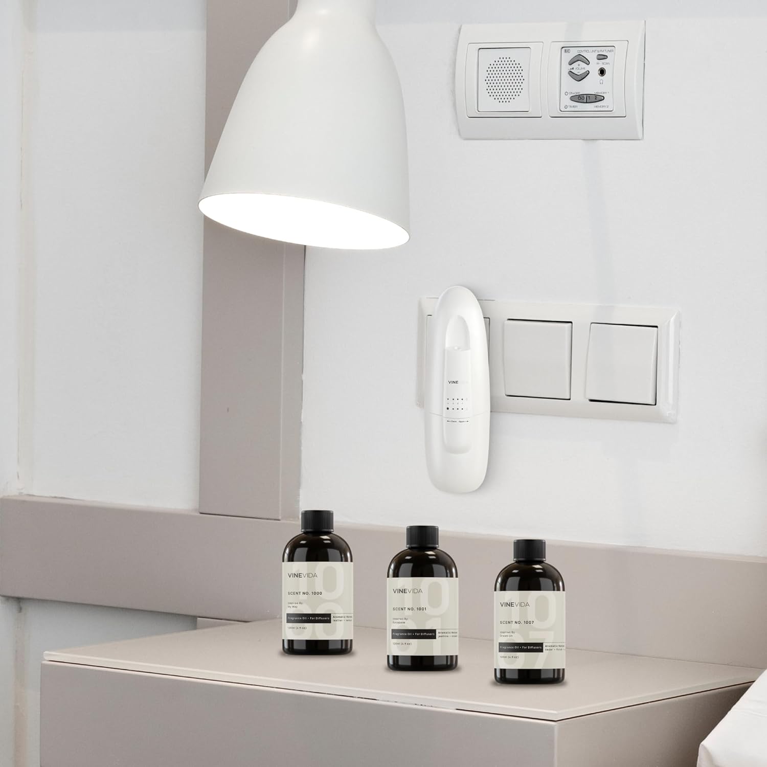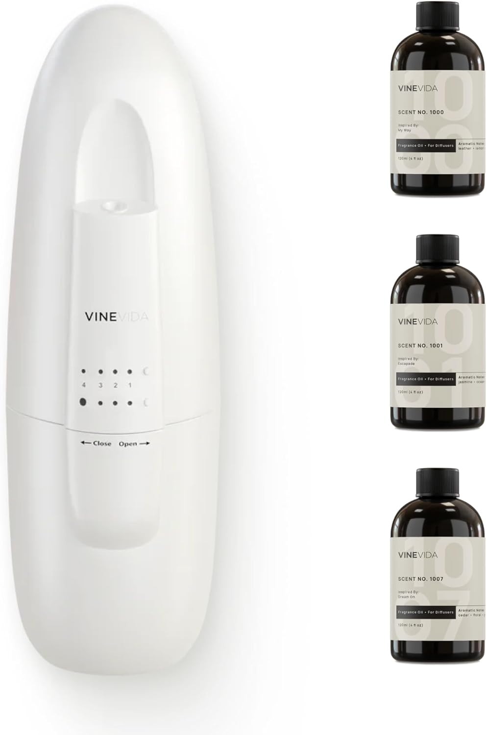 VINEVIDA Waterless Diffuser and 3 Top Selling Hotel Fragrance Oils - Essential Oil Diffuser for Home - Room Fragrance Air Diffuser [White Aroma Diffuser]