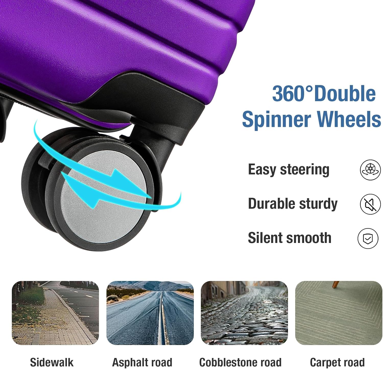 - SPINNER WHEELS LUGGAGE:KYME carry on luggage equiped with double 360°swivel wheels,rolling smoothly over a variety of surfaces.these 20 in small rolling suitcase equiped with a 3-step handle adjustment for different heights.Combination TSA lock and YKK zipper keeps your peace of mind
