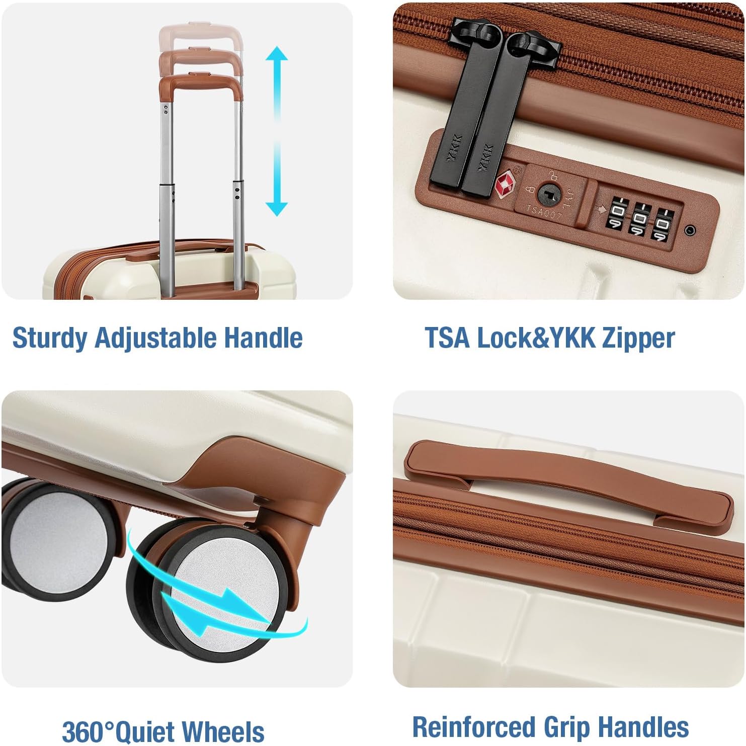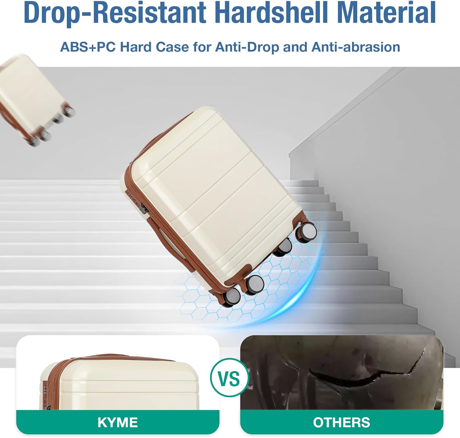KYME Carry On Luggage 22x14x9 Airline Approved with TSA Lock Hard Shell Carry On Suitcase Lightweight Suitcases with Wheels Small Luggage for Men Women,Carry-On 20 Inch,Beige