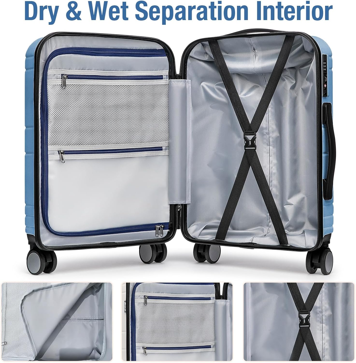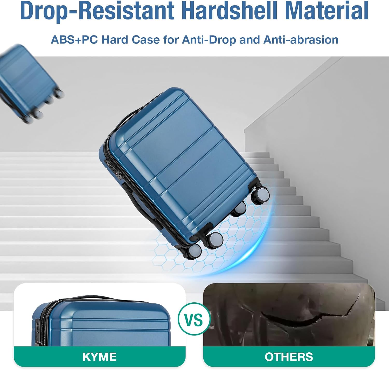 KYME Carry On Luggage 22x14x9 Airline Approved with TSA Lock Hard Shell Carry On Suitcase Lightweight Suitcases with Wheels Small Luggage for Men Women,Carry-On 20 Inch,Blue
