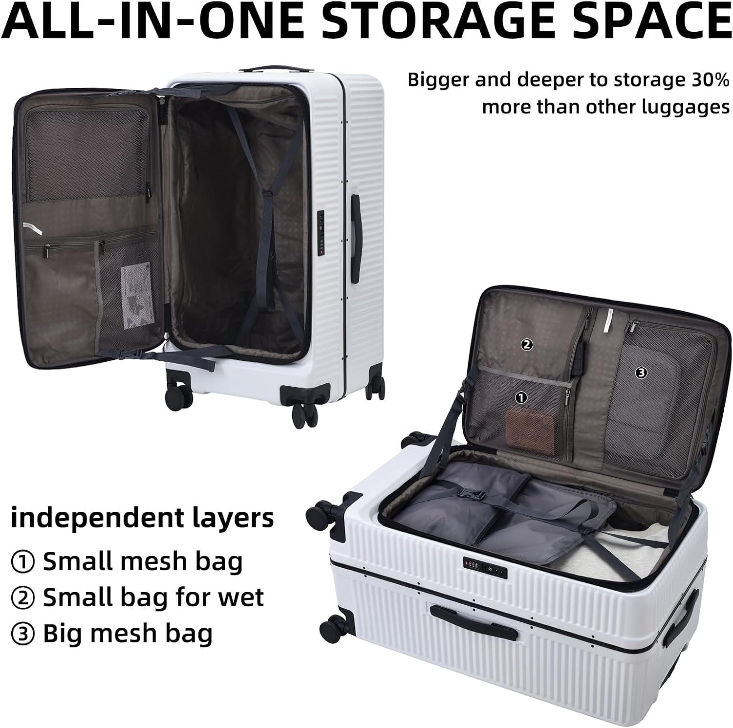 - Flat Top & Side Opening: Kaleenie 29 inch luggage is designed with flat top side zipper opening, different from traditional middle open suitcase. This design help you to open the suitcase easily and can storage more. All-in-one integrated storage space makes it easy to storage the bigger items