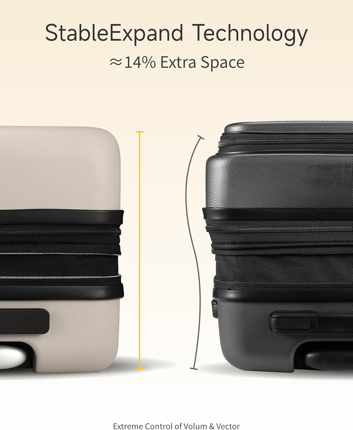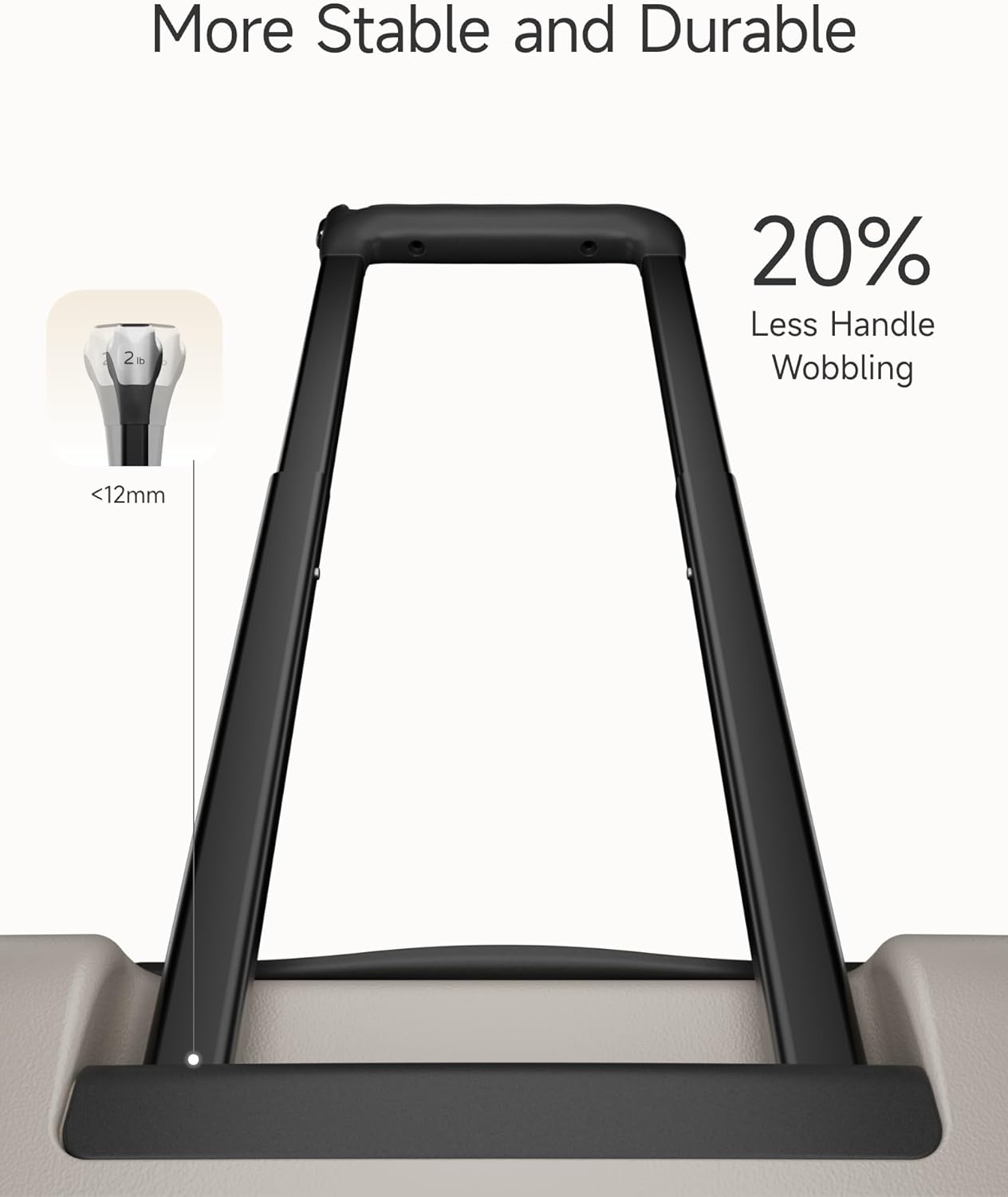 - Engineered Equilibrium – 10% Expandable Capacity, 100% Steady Glide. Our telescopic handle achieves a 12mm maximum wobble deviation, 20% outperforming the industry standard. Beyond that, the gravity-calibrated architecture of the LuggeX HUP3 suitcase maintains perfect load-stability harmony, eliminating wobbles even when fully packed.