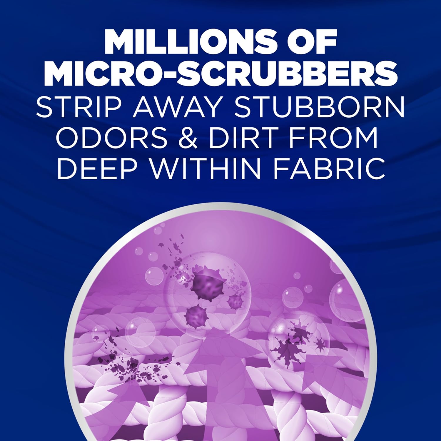 - Deep-Cleaning Detergent: This odor remover penetrates between fibers to eliminate everyday dirt and tough odors while leaving a radiant burst scent in every load of laundry