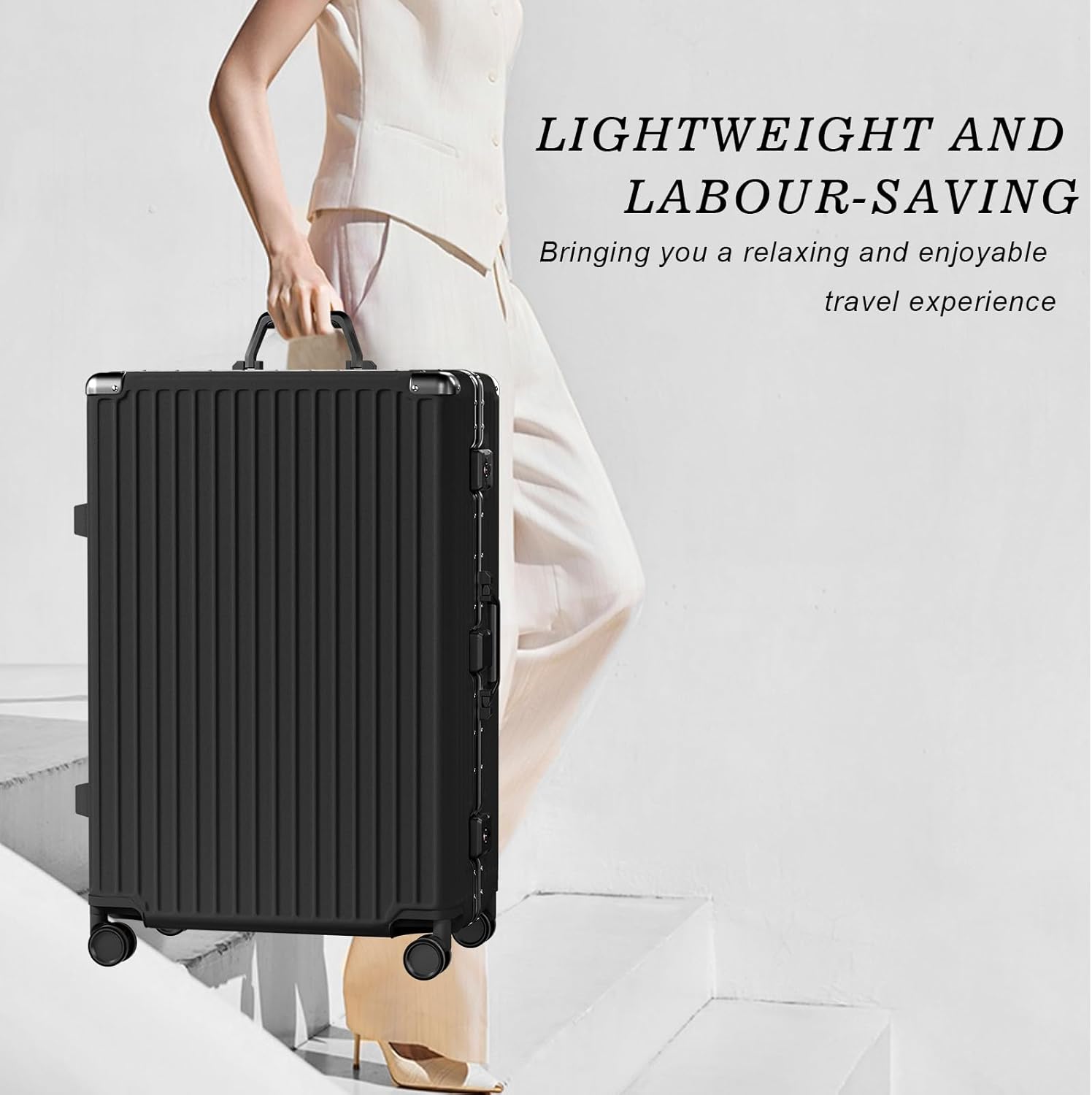 - 【360°Spinner Wheels】 The 4 multi-directional swivel wheels distribute the weight of your luggage evenly, ensuring an easy glide through a busy airport or train station, quietly and smoothly. The double wheel design is more durable.