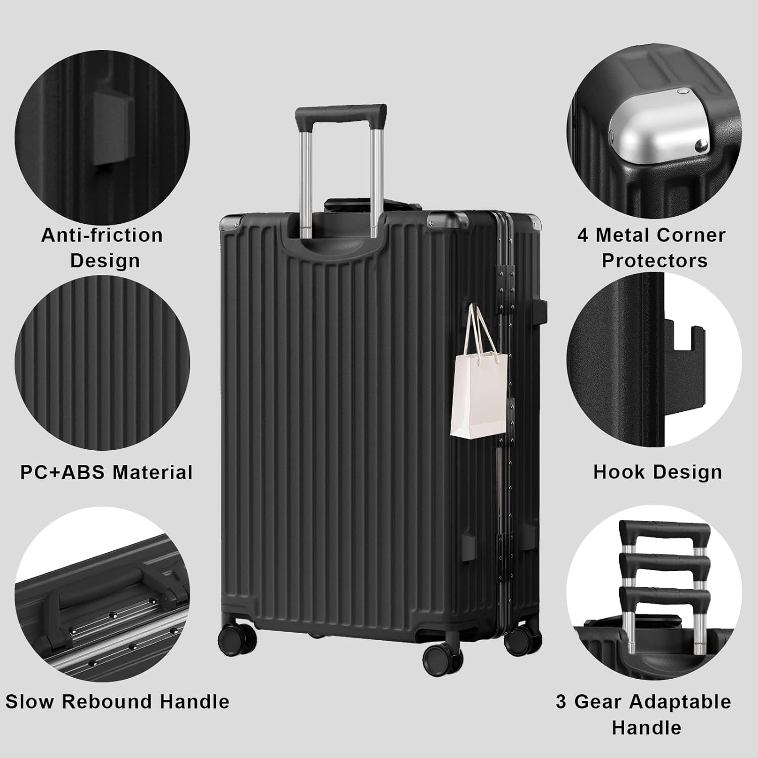 - 【4 Metal Corner Guards】The four corners of the luggage have 100% aluminium corner guards to further protect your luggage, even if the luggage is subjected to strong impacts, he can provide further protection and increase the usage time of the case.