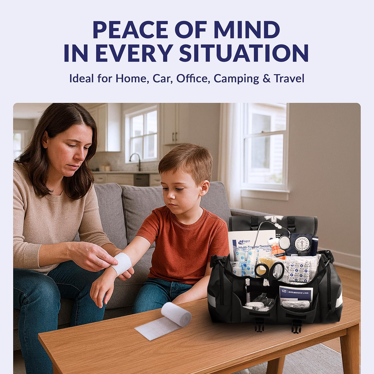 - DURABILITY YOU CAN TRUST - When seconds count, trust in the resilience of our medical kit bag. This first responder bag endures intense conditions, ensuring your medical supplies remain secured and protected in this reliable and sturdy medical bag fully stocked.