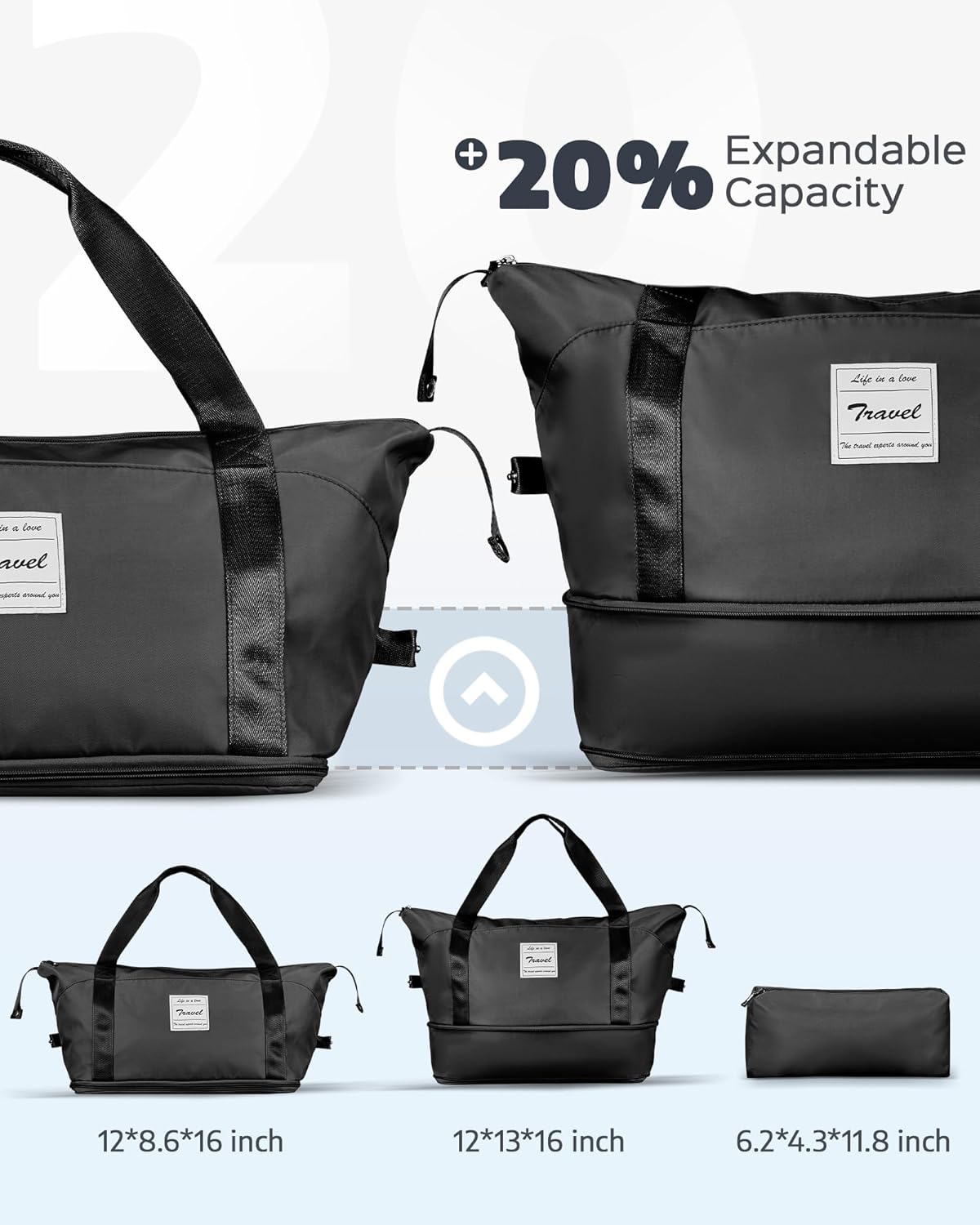 - Idea spacious Weekender Bag:The luggage's interior has a strap for securing clothes, a pocket with a zipper to separate wet and dry items, and a mesh area for documents or toiletries.with duffel bag and toiletry bag, provides the best additional storage for your belongings