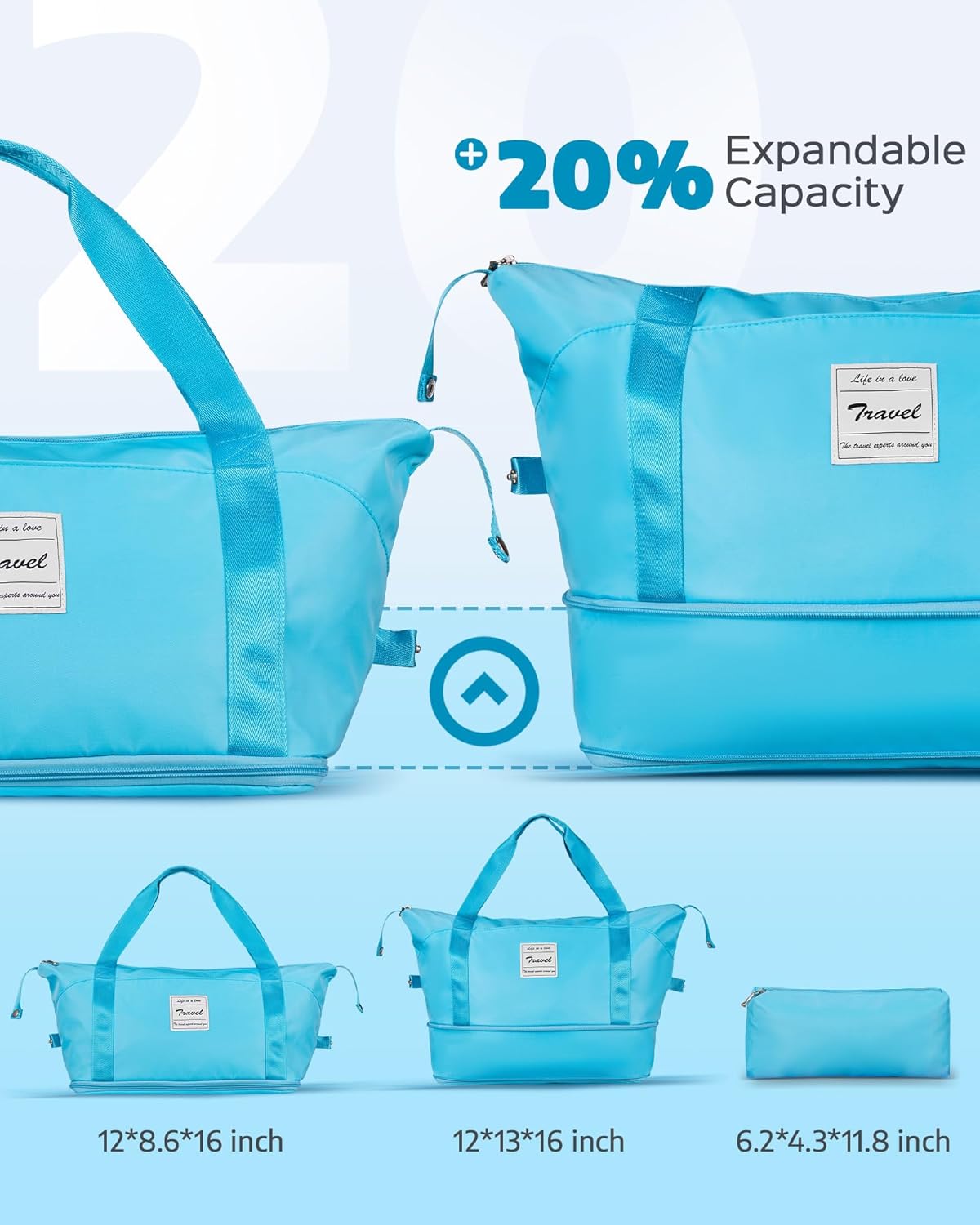 - Idea spacious Weekender Bag:The luggage's interior has a strap for securing clothes, a pocket with a zipper to separate wet and dry items, and a mesh area for documents or toiletries.with duffel bag and toiletry bag, provides the best additional storage for your belongings