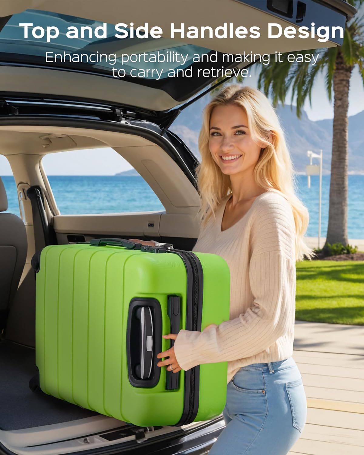 - Durable Material : Thanks to the luggage set's strong ABS material ,lightweight yet sturdy hardside body, and smooth adjustable 3-step telescopic handle,it can always keep in good condition after you using travel suitcase