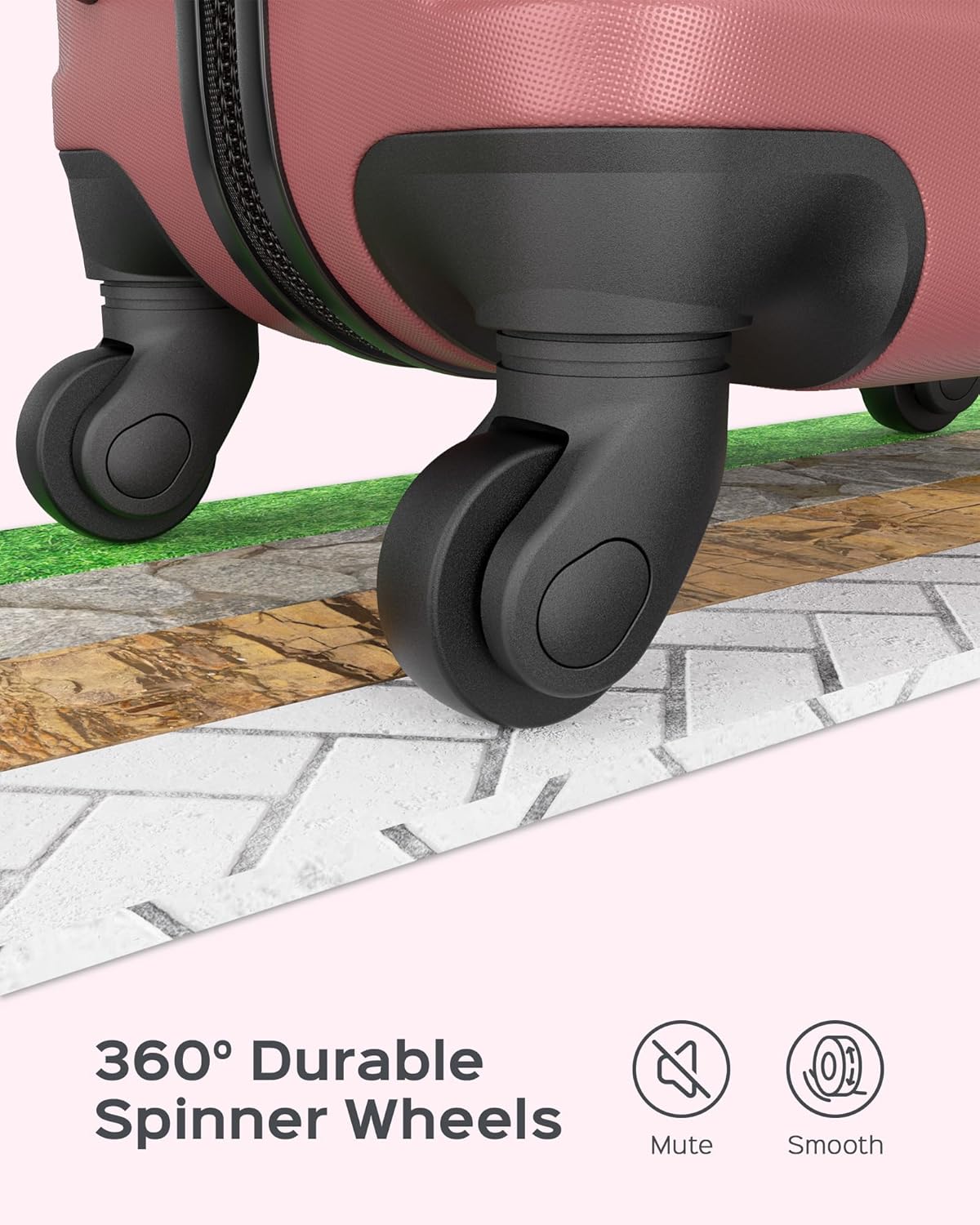 - Suitcase with spinner wheels:Our luggage sets come with TSA-approved locks to ensure secure travel. Choose our 360° silent wheels for a seamless, quiet, and effortless luggage-handling experience