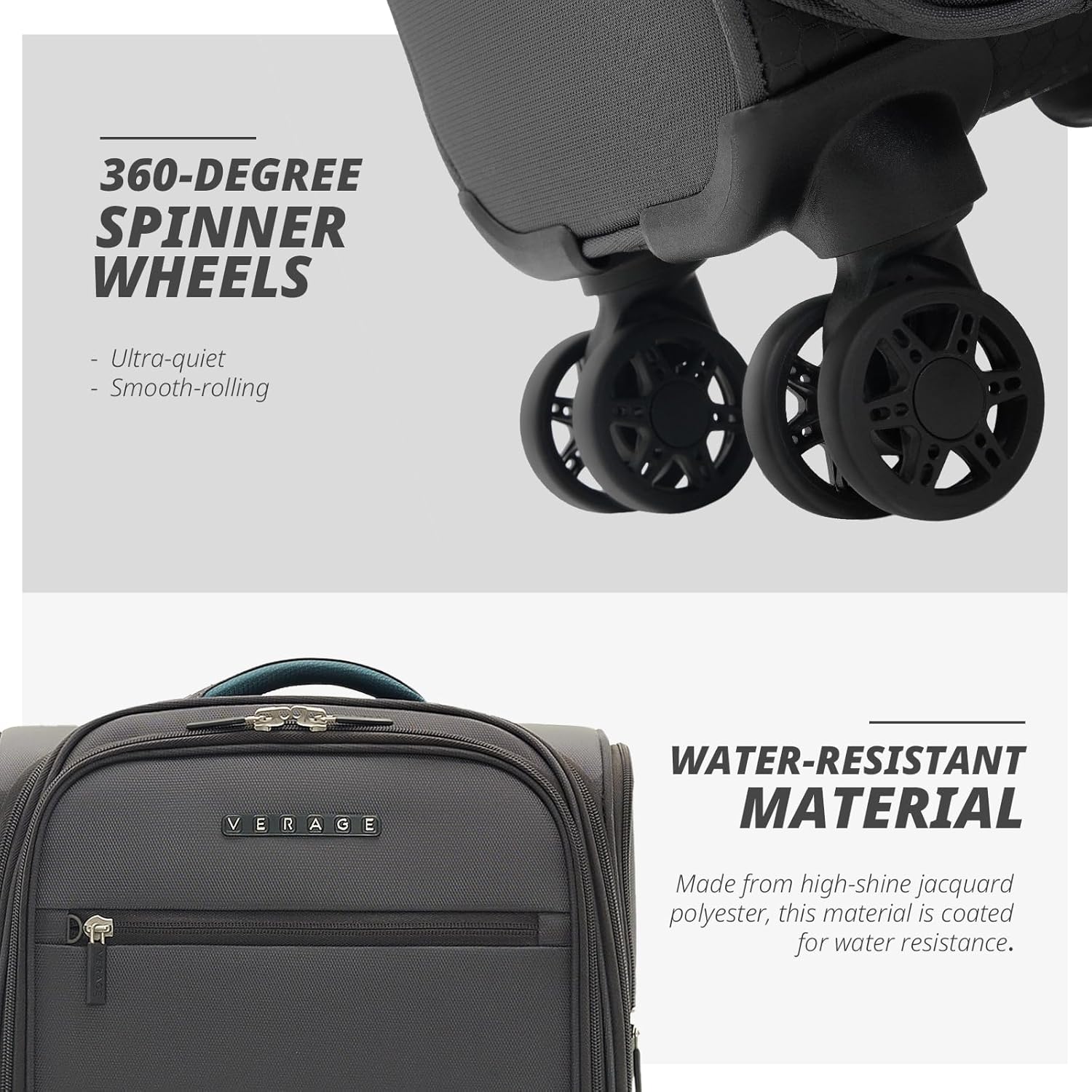 - VERAGE Underseat Carry On Luggage:This softside small suitcase boasts a compact design that easily fits under most airplane seats, making it convenient for on-the-go travelers. Equipped with smooth spinner wheels, this wheeled rolling bag effortlessly glides through busy airports and narrow aisles