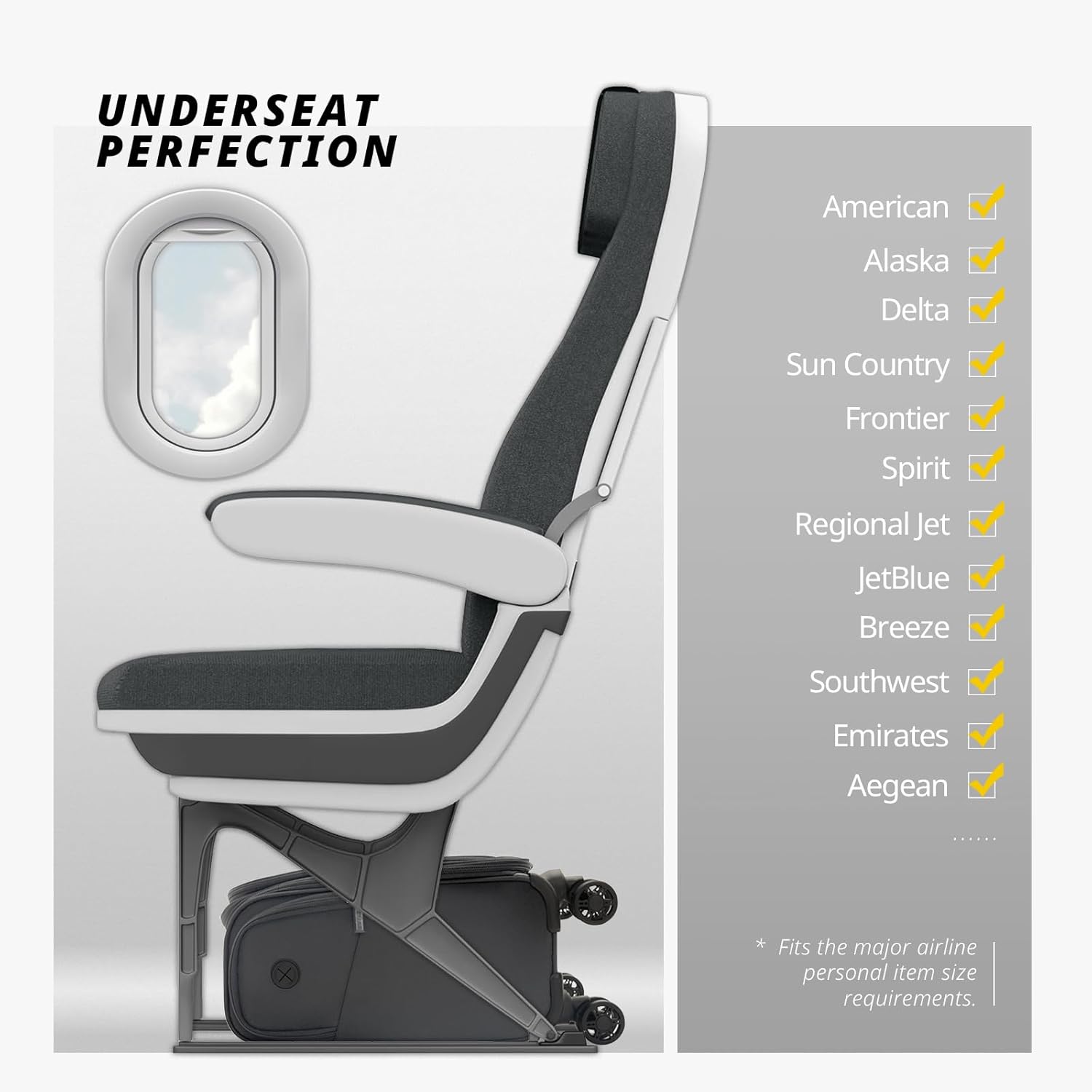 - Good Design for Hassle-Free Travel: Underseat Luggage Featuring a sturdy carry handle for easy lifting and a smart sleeve for attaching to upright luggage handles, our underseat bag makes travel effortless