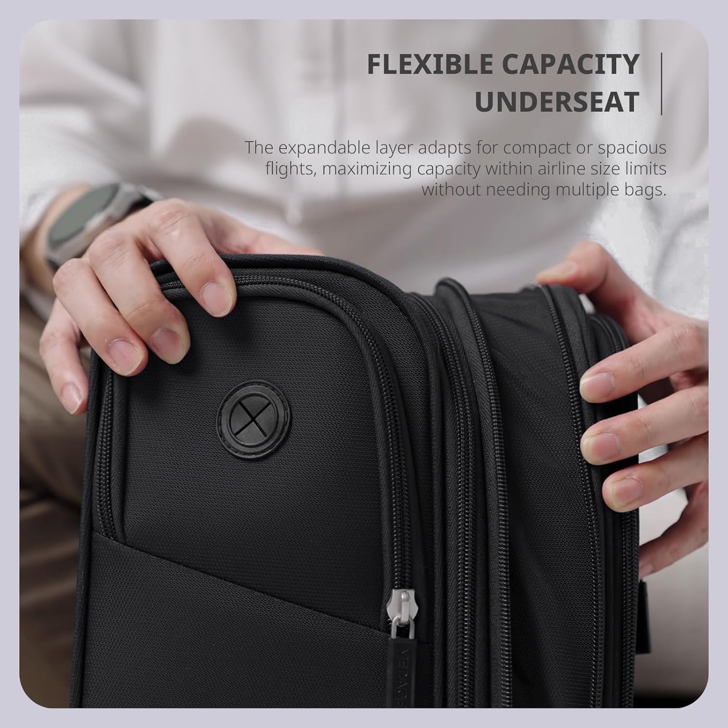 Verage Under Seat Luggage with Wheels, Softside Expanable Small Suitcase Carry On Luggage Bags for Airlines Airplanes Short Trip Men Women (Black, 16-Inch Rolling Underseat)