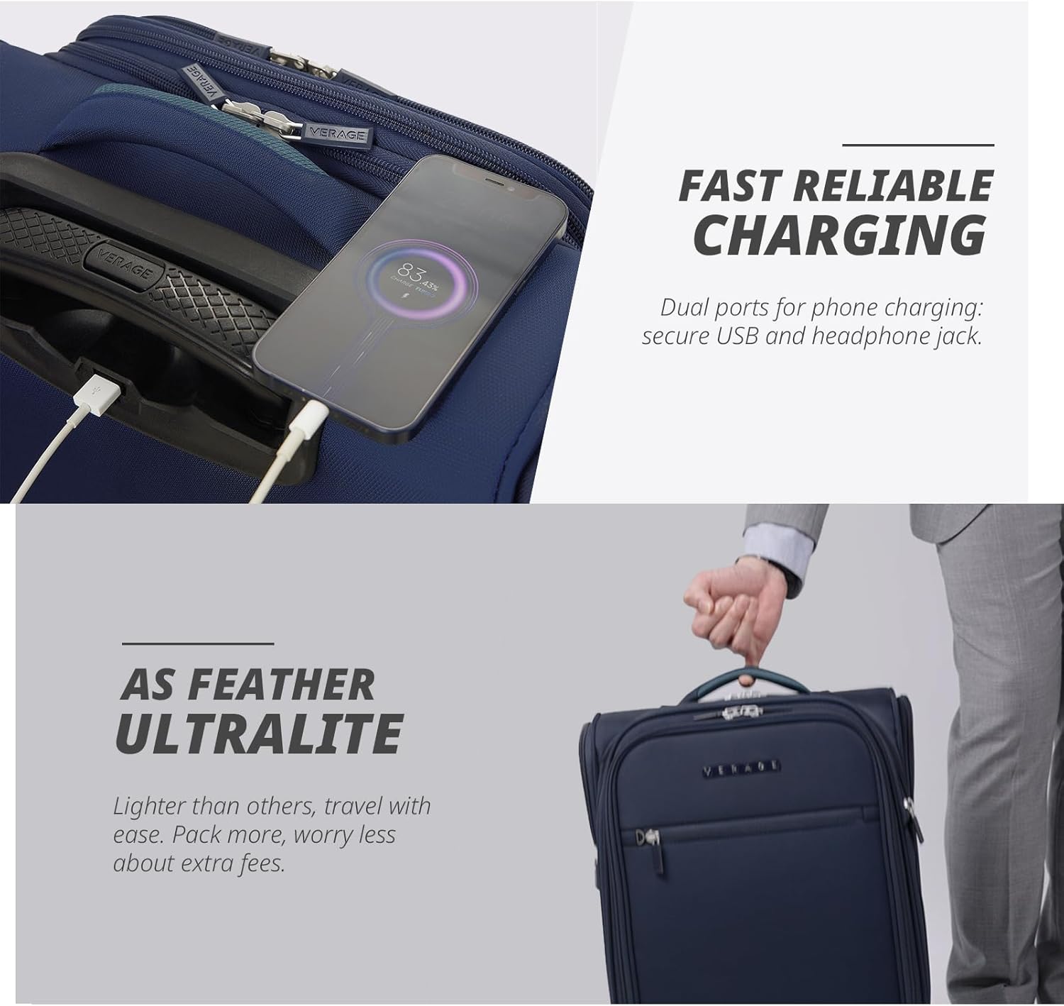 - VERAGE Underseat Carry On Luggage:This softside small suitcase boasts a compact design that easily fits under most airplane seats, making it convenient for on-the-go travelers. Equipped with smooth spinner wheels, this wheeled rolling bag effortlessly glides through busy airports and narrow aisles