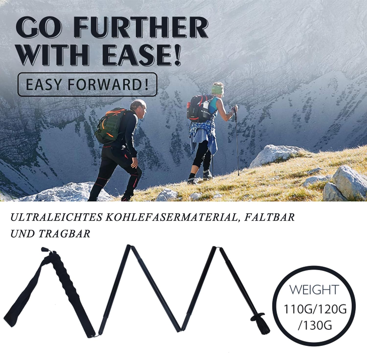 - Lightweight & Ergonomic Design Weighing just 115g per pole, these trekking poles are designed to minimise fatigue during long hikes. The lightweight construction reduces strain on your wrists and arms, allowing you to trek longer and farther without discomfort. Whether you're climbing steep trails or walking on flat terrain, these poles provide effortless support for all your adventures.