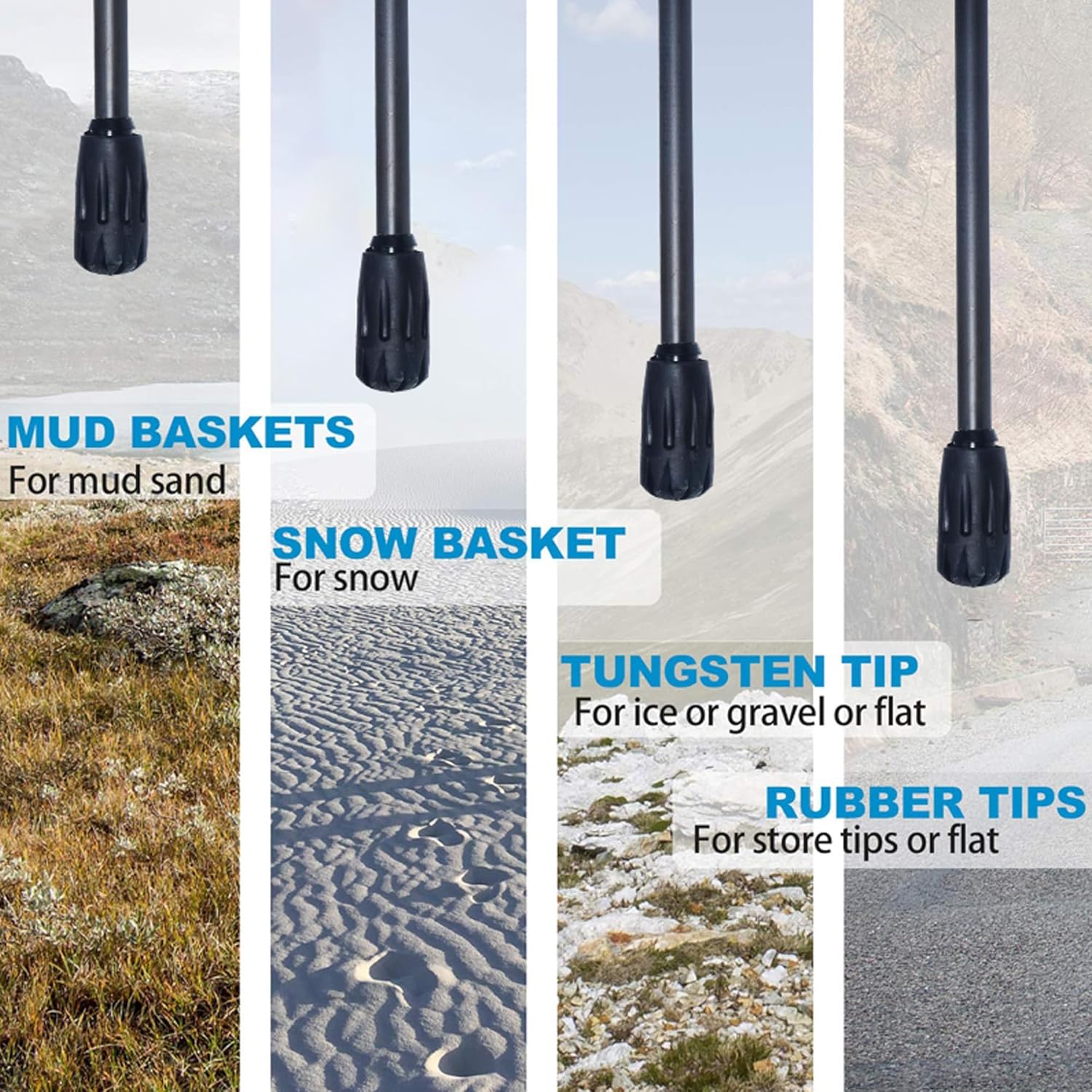 - Versatile Performance for All Terrains From rocky mountain trails to muddy paths and snowy terrains, these trekking poles deliver reliable performance in any environment. Whether you're a beginner or an experienced hiker, these poles provide the stability and support you need to tackle challenging landscapes. Lightweight, durable, and easy to use, they’re a must-have for outdoor enthusiasts.