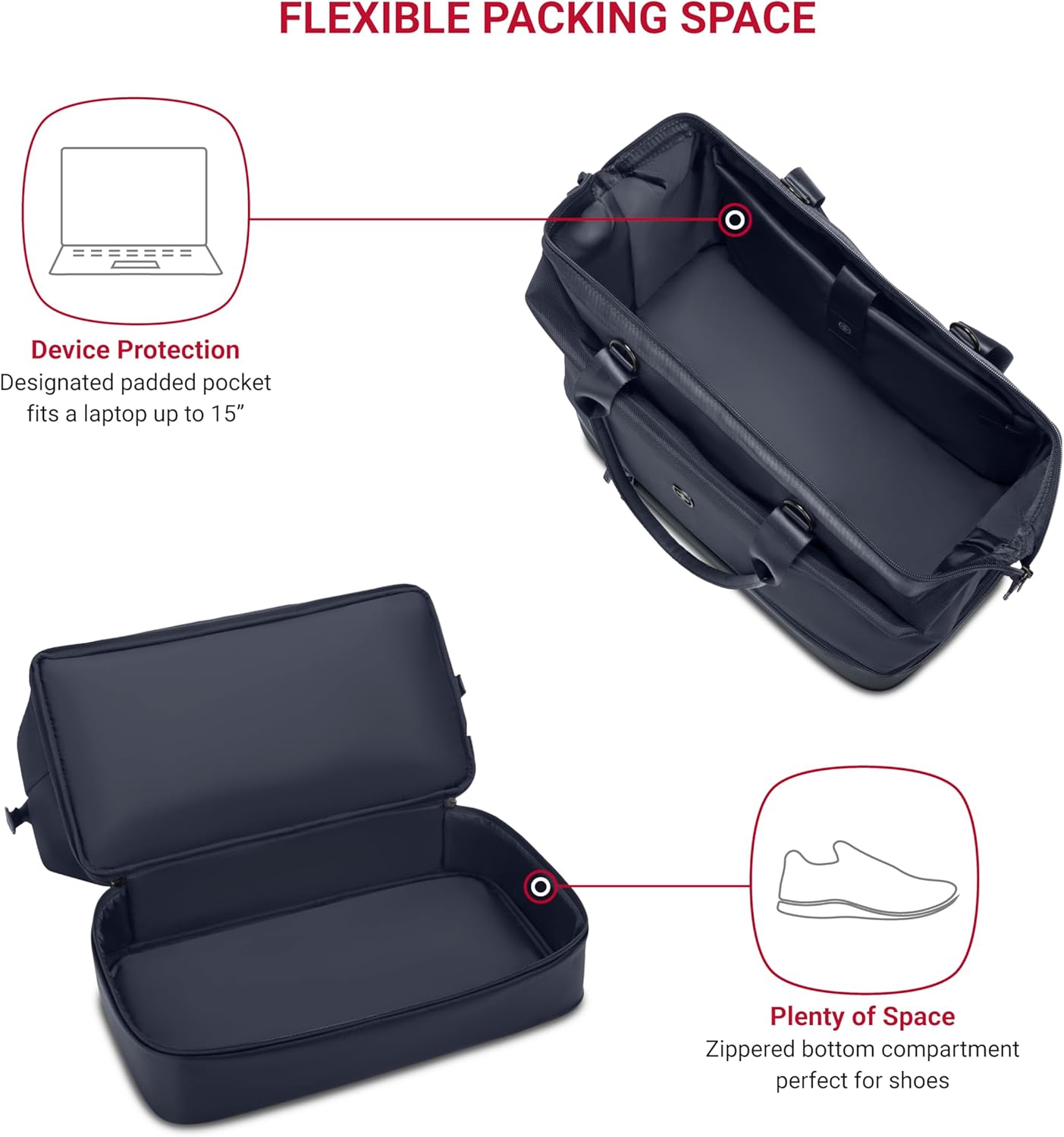 - 2-Piece Weekender & Expandable Luggage Set: This versatile set includes a stylish Weekender Tote and a 27-inch expandable suitcase, perfect for two-week trips. The Weekender features a wire-frame opening for easy packing, a key hook, a trolley strap for secure stacking, and a zippered bottom compartment ideal for shoes or extra essentials.