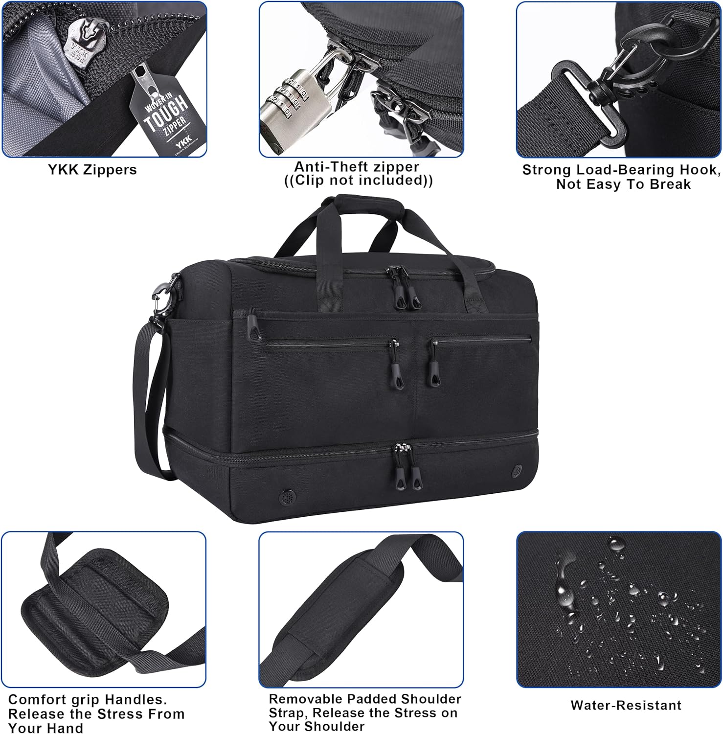 Travel Bags for Men, YKK Zipper Mens Carry On Duffle Weekender Overnight Duty Bag with Shoe Compartment & Wet Pocket & RFID Blocking Pouch