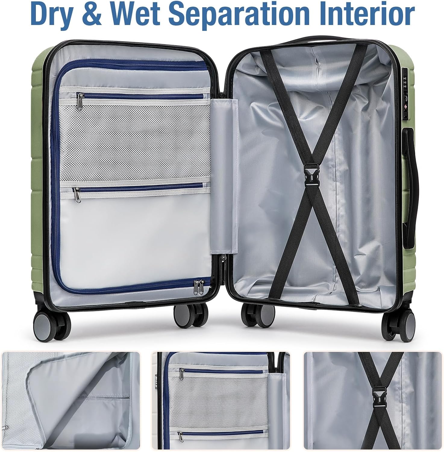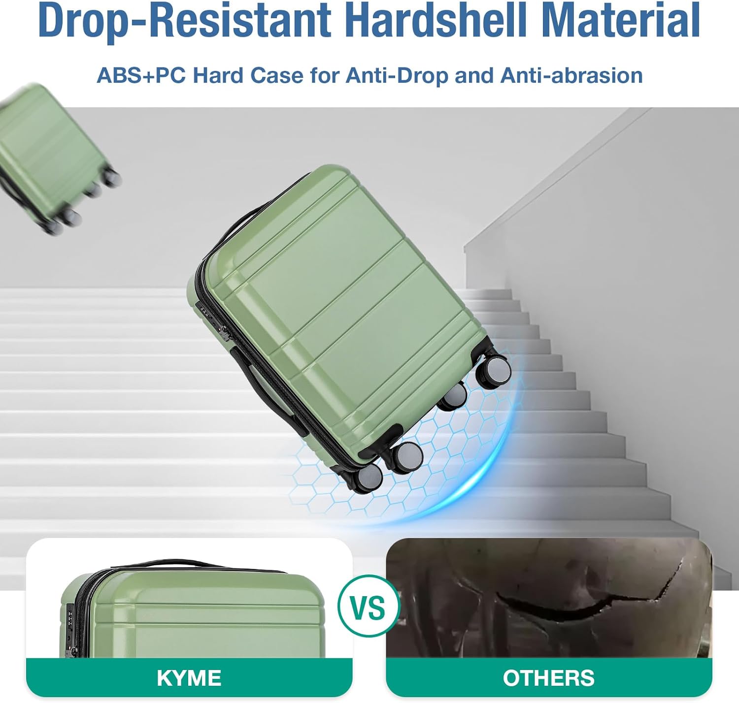 KYME Carry On Luggage 22x14x9 Airline Approved with TSA Lock Hard Shell Carry On Suitcase Lightweight Suitcases with Wheels Small Luggage for Men Women,Carry-On 20 Inch,Lt Green