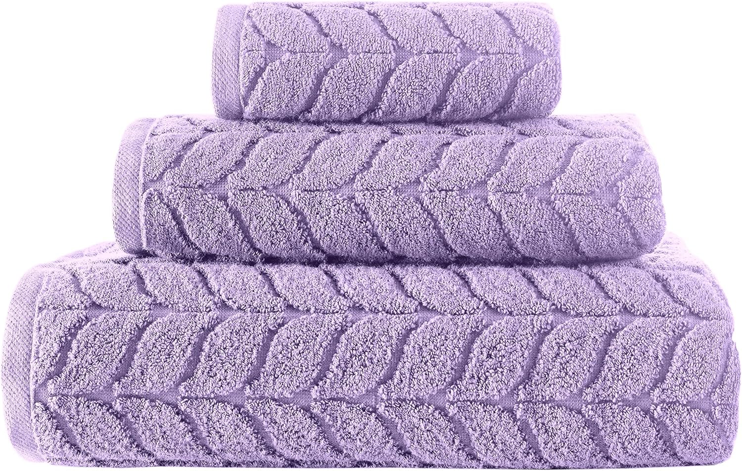 BAGNO MILANO Turkish Bath Towels, Soft Plush Jacquard Luxury Bath Towels, Quick Dry Towel Set (Lavender, 3 pcs Towel Set)